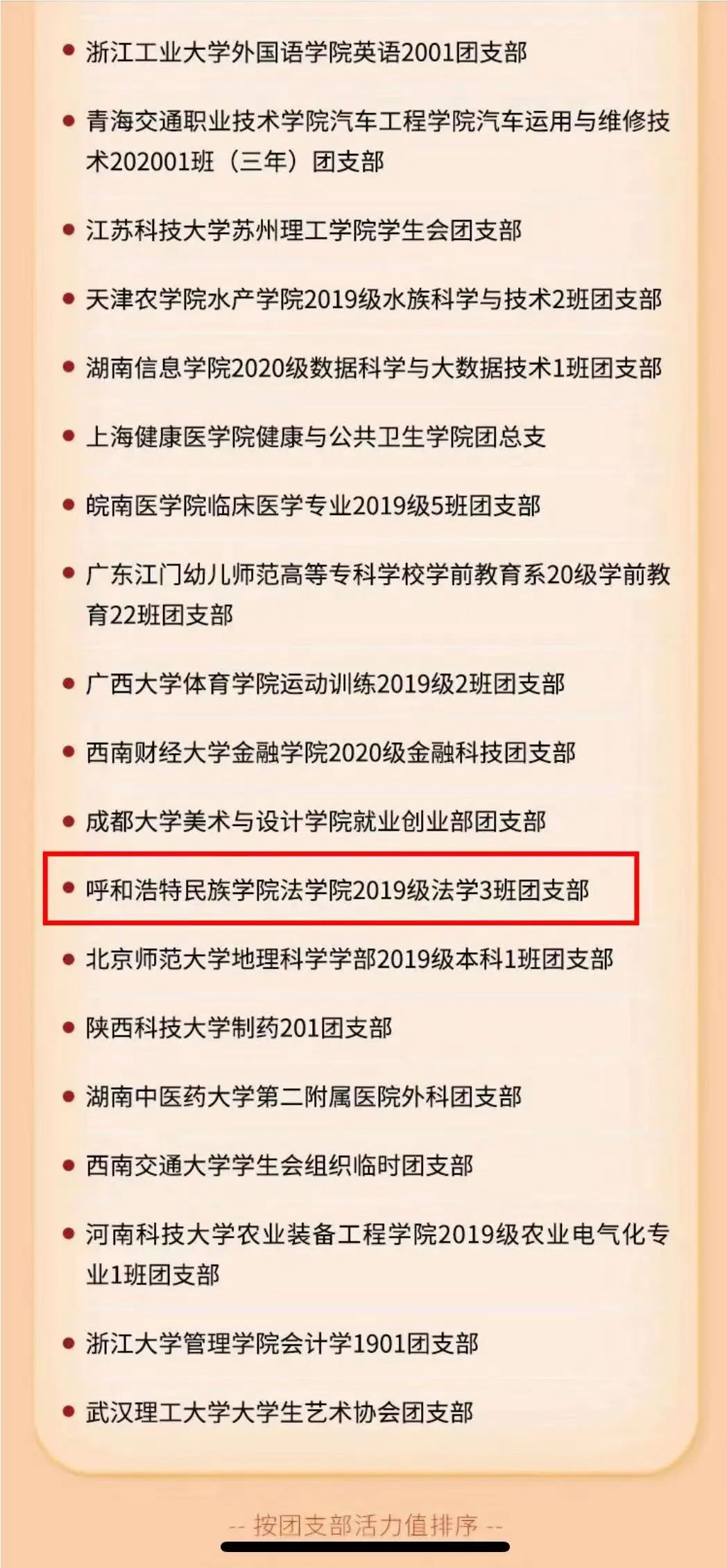 近日,2022年度全國高校“活力團支部”風采展示TOP100榜揭曉,我校法學院2019級法學3班團支部入圍全國高校“活力團支部”最具服務力TOP100榜。