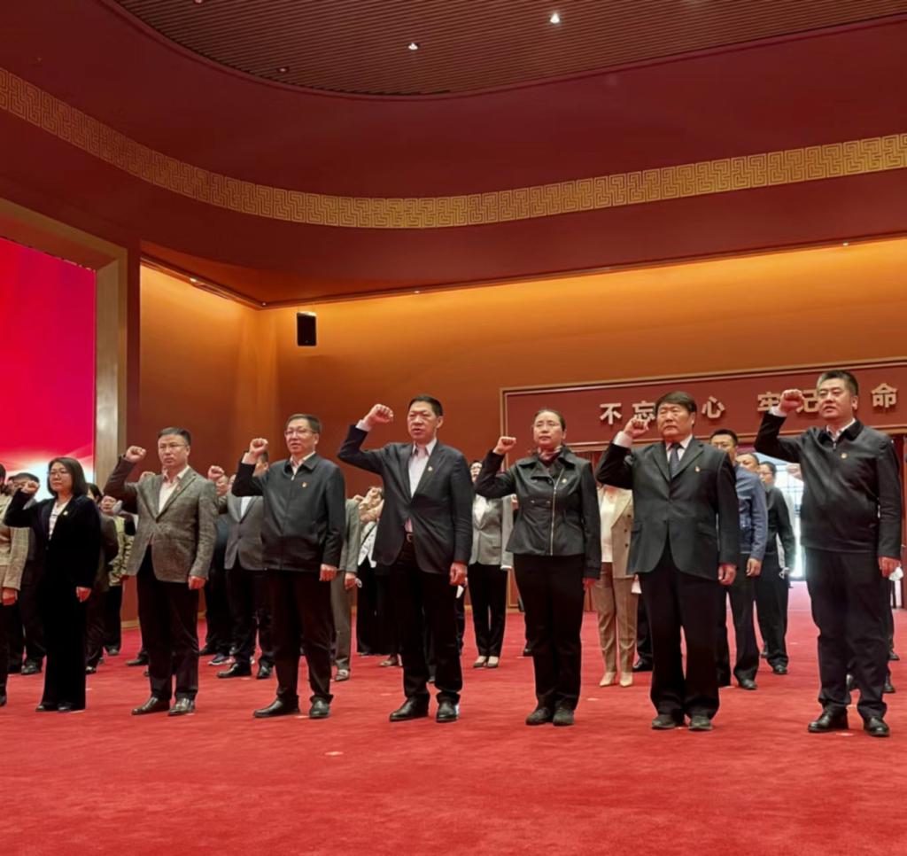 參觀開始前,全體觀展人員步入宣誓大廳,重溫入黨誓詞。大家面向鮮紅的中國共產(chǎn)黨黨旗,鄭重舉起右拳宣誓,用錚錚誓言宣示堅定決心,莊嚴(yán)的宣誓聲響徹大廳。