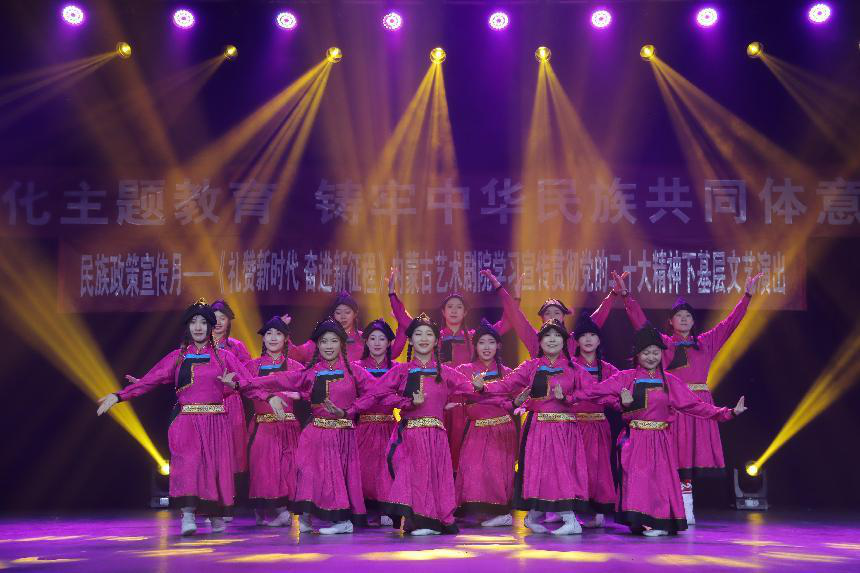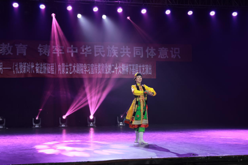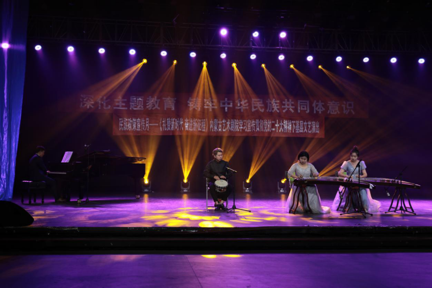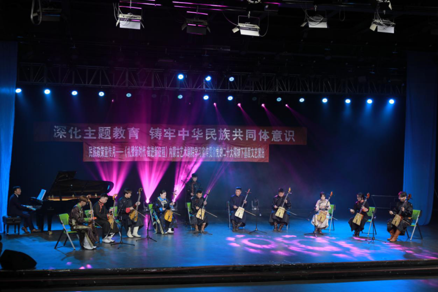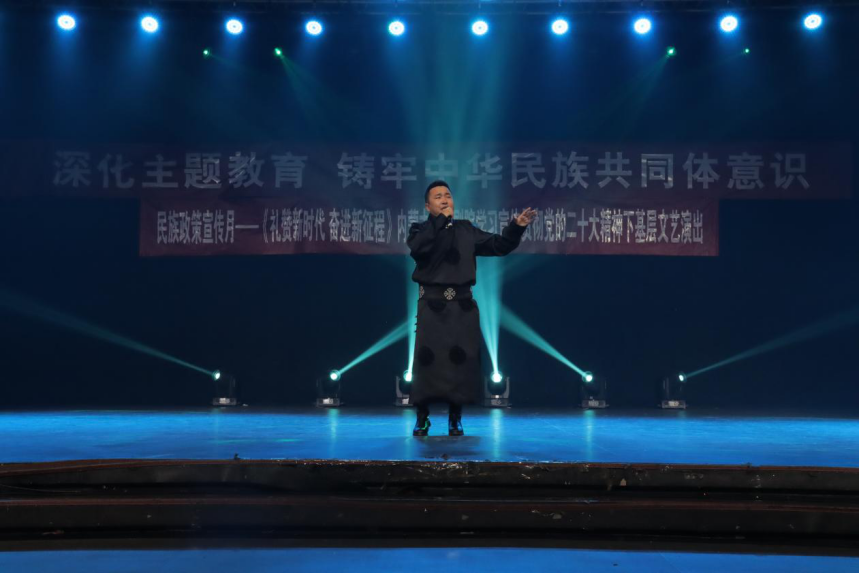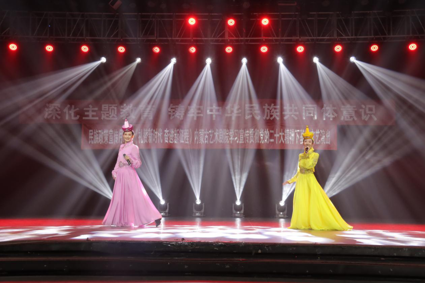 為深入學習貫徹習近平總書記關于加強和改進民族工作的重要思想和黨的二十大精神,深化學習貫徹習近平新時代中國特色社會主義思想主題教育,扎實做好以鑄牢中華民族共同體意識為主線的民族團結進步創建工作,豐富“民族政策宣傳月”活動內容,5月26日下午,我校與內蒙古藝術劇院在學校演播廳聯合舉辦了“深化主題教育 鑄牢中華民族共同體意識”文藝演出。自治區黨委主題教育第十一巡回指導組副組長李文元,聯絡員張琪娟、成員劉鈺出席活動。學校黨委書記劉九萬,黨委副書記、校長韓偉新,黨委委員、紀委書記、監察專員王冬梅,黨委委員、副校長高喜天,黨委委員、副校長劉瑞鴻和黨政部門負責人、各二級學院書記、院長以及音樂學院、公共管理學院師生代表參加了本次活動。