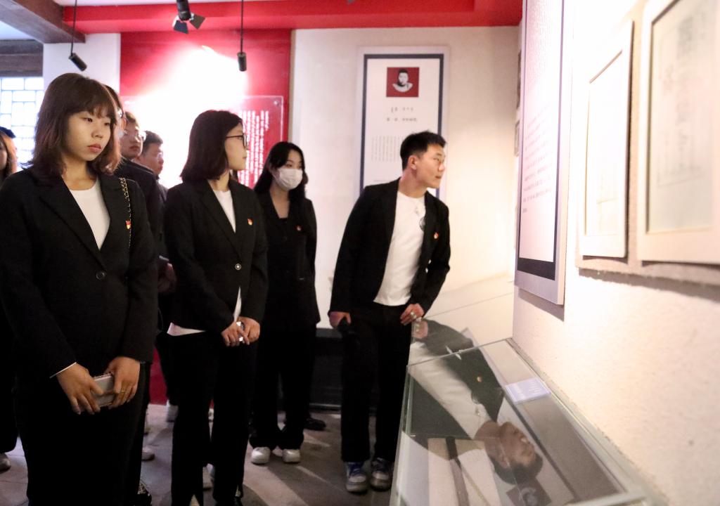 活動中,黨員干部和青年學生代表列隊瞻仰革命烈士雕像,向革命烈士默哀致敬。霍武、劉九萬代表指導組和校黨委敬獻花籃。隨后,全體人員參觀了館中的各展廳,不時駐足認真觀看展廳所陳列具有歷史意義的物品和圖片,通過烈士紀念館講解員的介紹,大家對多松年烈士生平簡介和革命事跡有了全面深入的了解。