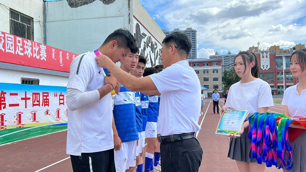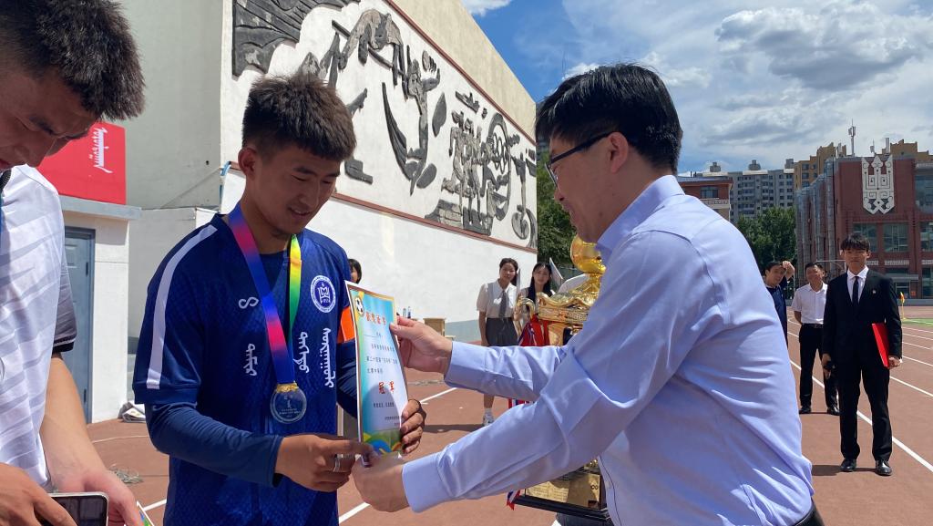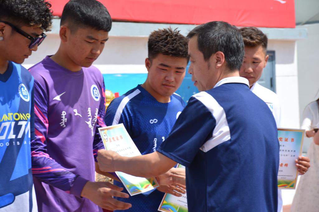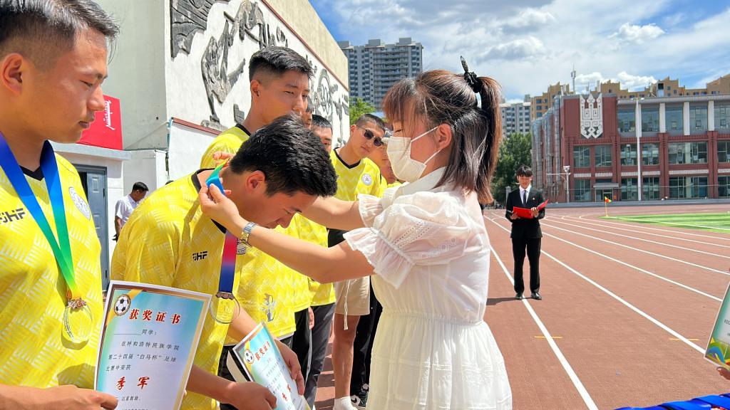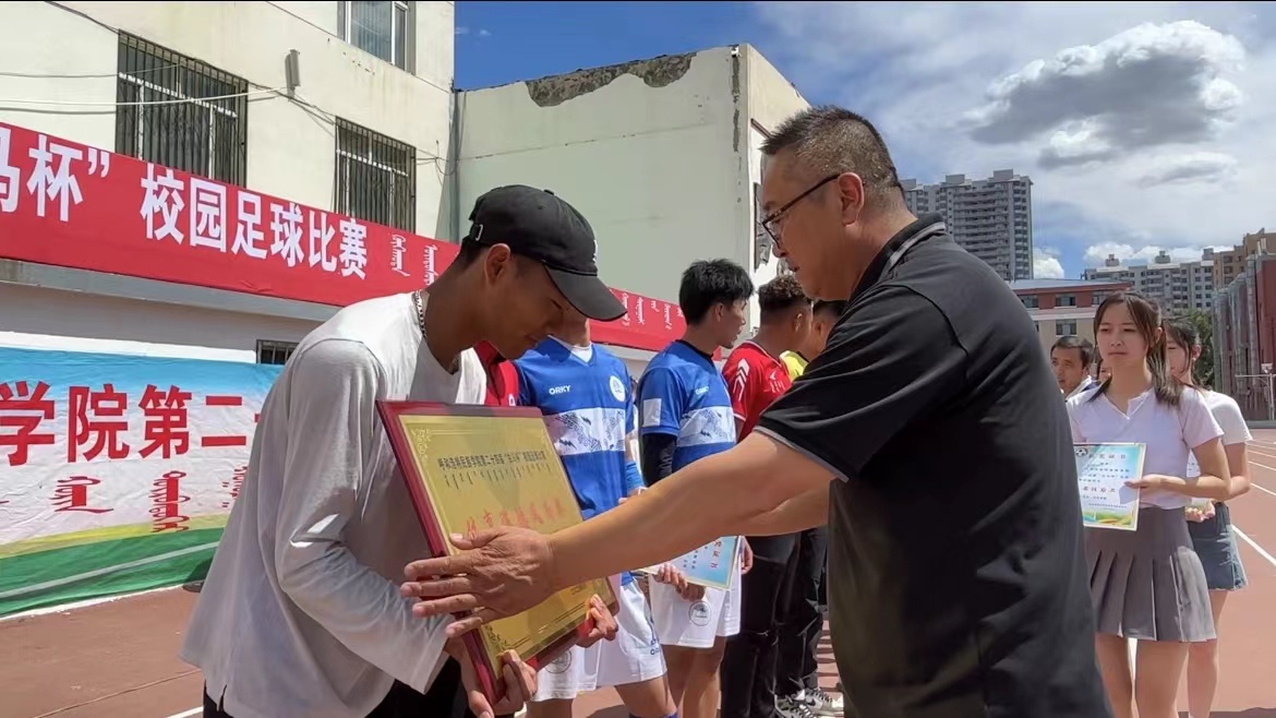 校長(zhǎng)韓偉新、副校長(zhǎng)高喜天以及團(tuán)委書(shū)記蘇倫高娃、體育學(xué)院黨總支書(shū)記白東升、體育學(xué)院院長(zhǎng)烏日根牧仁分別為冠亞季軍球隊(duì)、最佳陣容、最佳射手、最有價(jià)值球員、體育道德風(fēng)尚獎(jiǎng)?lì)C發(fā)了獎(jiǎng)杯和獎(jiǎng)牌,體育學(xué)院運(yùn)動(dòng)學(xué)教研室南丁寶力格宣讀了獲獎(jiǎng)名單。