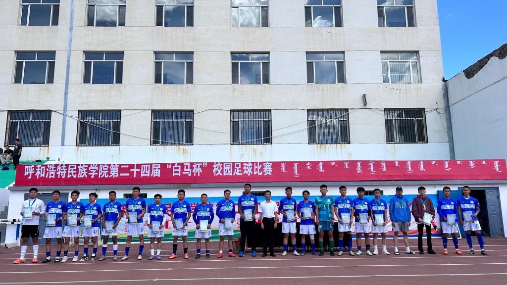 本屆“白馬杯”校園足球比賽歷時(shí)一個(gè)半月,共進(jìn)行了32場(chǎng)比賽,體育學(xué)院和蒙古學(xué)學(xué)院足球隊(duì)?wèi){借驍勇的銳氣和扎實(shí)的功底一路過(guò)關(guān)斬將,成功晉級(jí)決賽。在決賽中,雙方進(jìn)攻、防守,各不相讓。場(chǎng)外觀眾歡呼聲的不斷加持讓飛揚(yáng)的步伐和矯健的身姿在綠茵場(chǎng)上顯得格外耀眼。最終,體育學(xué)院足球隊(duì)以1:0的優(yōu)勢(shì)奪得了本屆比賽的冠軍,蒙古學(xué)學(xué)院足球隊(duì)獲得亞軍,經(jīng)濟(jì)管理學(xué)院足球隊(duì)獲得季軍。