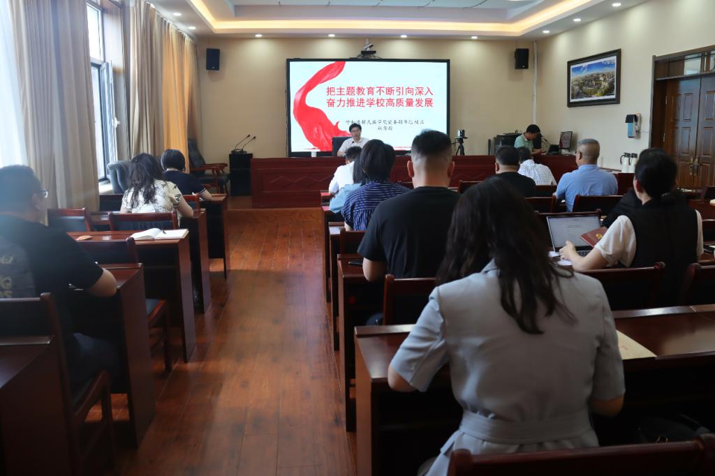 按照學(xué)習(xí)貫徹習(xí)近平新時代中國特色社會主義思想主題教育總體安排,6月13日上午,校黨委副書記、校長韓偉新以“把主題教育不斷引向深入、奮力推進學(xué)校高質(zhì)量發(fā)展”為題,為機關(guān)黨委和聯(lián)系學(xué)院黨員干部講授了專題黨課。