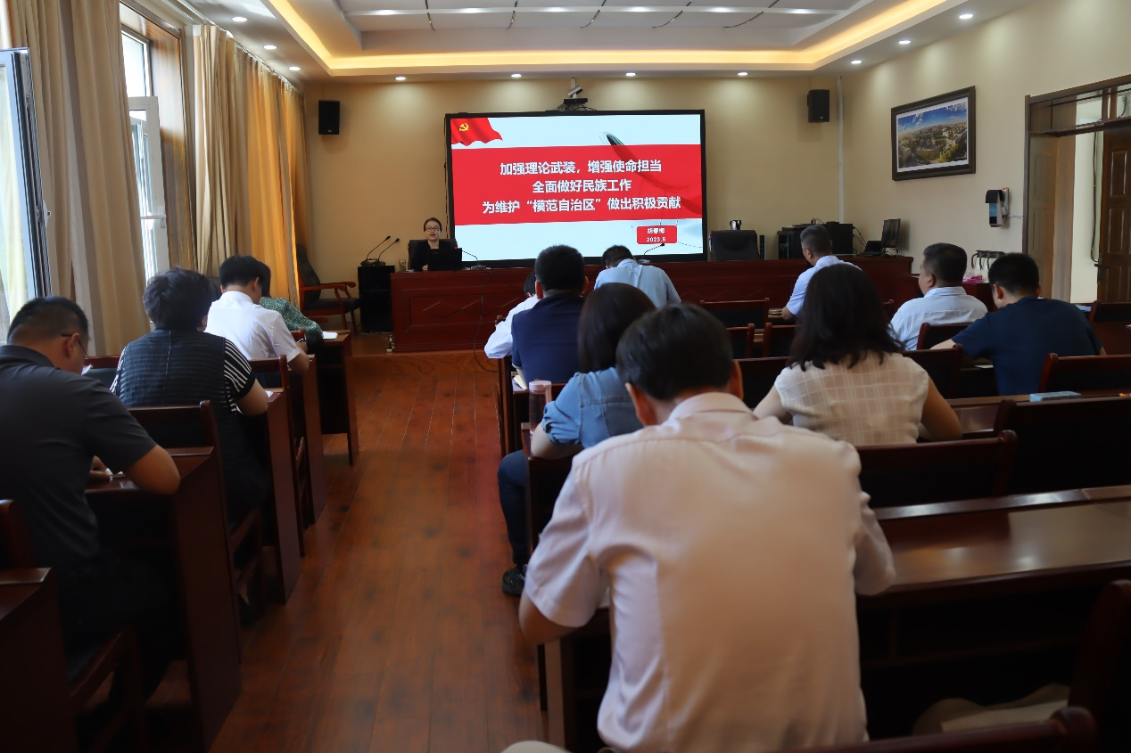 黨課從新時代民族工作取得的歷史性成就、歷史方位、根本遵循、重要性認識、核心要義等五個方面深刻闡述習近平總書記關于加強和改進民族工作重要思想,并就如何學好、如何貫徹好習近平總書記關于加強和改進民族工作的重要思想與機關干部進行了深入探討和交流。