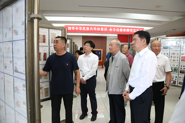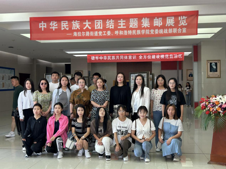 為迎接建黨102周年,推動(dòng)學(xué)習(xí)貫徹習(xí)近平新時(shí)代中國(guó)特色社會(huì)主義思想主題教育走深走實(shí),有形有感有效鑄牢中華民族共同體意識(shí),學(xué)校黨委統(tǒng)戰(zhàn)部聯(lián)合海拉爾路街道黨工委、內(nèi)蒙古郵政分公司集郵文化傳媒部、內(nèi)蒙古老干部活動(dòng)中心黨總支、內(nèi)蒙古老干部中心集郵協(xié)會(huì),在北區(qū)圖書館二樓舉辦“中華民族大團(tuán)結(jié)”主題集郵展覽。國(guó)務(wù)院參事室特約研究員,曾任中紀(jì)委駐交通運(yùn)輸部紀(jì)檢組組長(zhǎng)、原自治區(qū)黨委副書記、中華全國(guó)集郵聯(lián)合會(huì)第七屆理事會(huì)會(huì)長(zhǎng)楊利民親臨現(xiàn)場(chǎng)。學(xué)校黨委書記劉九萬(wàn),黨委副書記、校長(zhǎng)韓偉新,黨委委員、統(tǒng)戰(zhàn)部部長(zhǎng)包君,黨委委員、黨政辦公室主任朝格吉樂(lè)圖到場(chǎng)觀展。學(xué)校各二級(jí)學(xué)院、各處級(jí)部門均組織師生參觀了展覽。