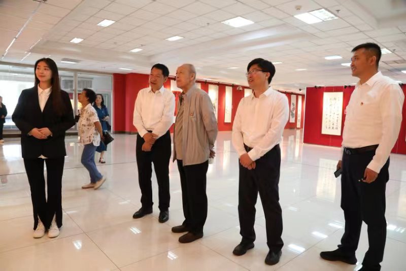 觀展期間,到場(chǎng)人員還到五層,參觀學(xué)習(xí)了主題教育書畫展。