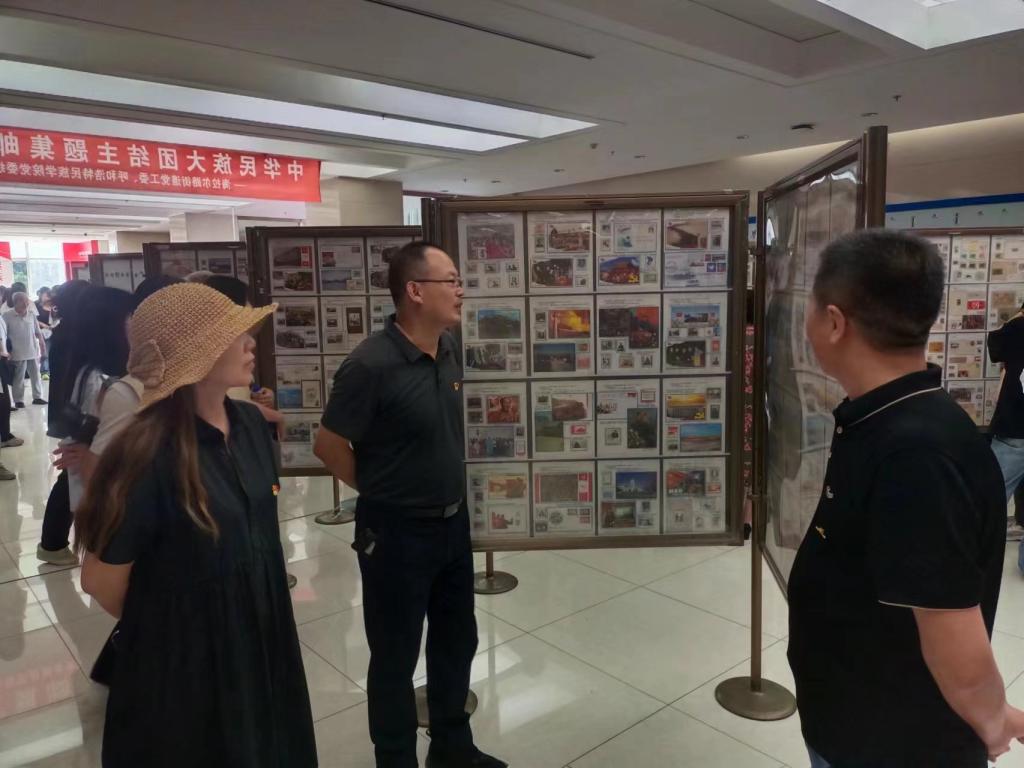 郵票被譽(yù)為“國(guó)家名片”,是弘揚(yáng)民族精神、傳播優(yōu)秀文化的重要載體。本次展覽以鑄牢中華民族共同體意識(shí)為主線,共展出16部40框郵集,內(nèi)容豐富、精品薈萃。題材涉及新中國(guó)發(fā)展歷程、中國(guó)共產(chǎn)黨的成長(zhǎng)史及發(fā)展成就、內(nèi)蒙古發(fā)展成就等專題郵集,內(nèi)容包含《中國(guó)共產(chǎn)黨歷史》《毛澤東》《共和國(guó)歷程》《弘揚(yáng)長(zhǎng)征魂 同筑中國(guó)夢(mèng)》《建設(shè)亮麗內(nèi)蒙古 共圓偉大中國(guó)夢(mèng)》《生肖收藏的記憶》《中華龍》《呼和浩特郵政史(1908-1957)》《綏遠(yuǎn)郵政史(1904-1954)》等。展品展現(xiàn)出中華各族兒女在中國(guó)共產(chǎn)黨的堅(jiān)強(qiáng)領(lǐng)導(dǎo)下,經(jīng)濟(jì)建設(shè)、民族團(tuán)結(jié)、文化建設(shè)、邊疆安定、生態(tài)文明建設(shè)等方面取得的歷史性巨變和輝煌的成就。郵票收集愛(ài)好者們現(xiàn)場(chǎng)講解郵票知識(shí)、發(fā)展歷史、藏品背景等內(nèi)容,師生受益匪淺。