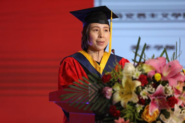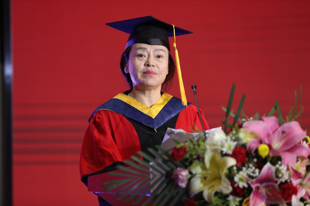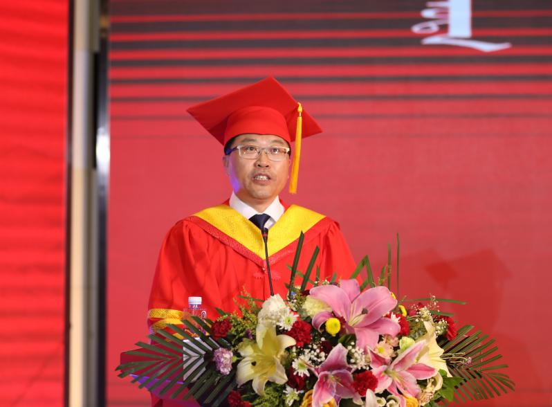 韓偉新在致辭中代表學校向圓滿完成學業,即將踏上人生新征程的2023屆全體畢業生表示熱烈的祝賀,向悉心培育同學們的老師和家長致以衷心的感謝。他勉勵同學們一要厚植愛國情懷,堅定信念、志存高遠,做新時代民族復興中勇往直前的筑夢人;二要錘煉實干之勇,腳踏實地、艱苦奮斗,做中國式現代化勇毅前行的建設者;三要擔當團結之責,愛我中華、守望相助,做鑄牢中華民族共同體意識的“播種者”和推動者。并祝愿所有畢業生此去繁花似錦,歸來仍是少年!