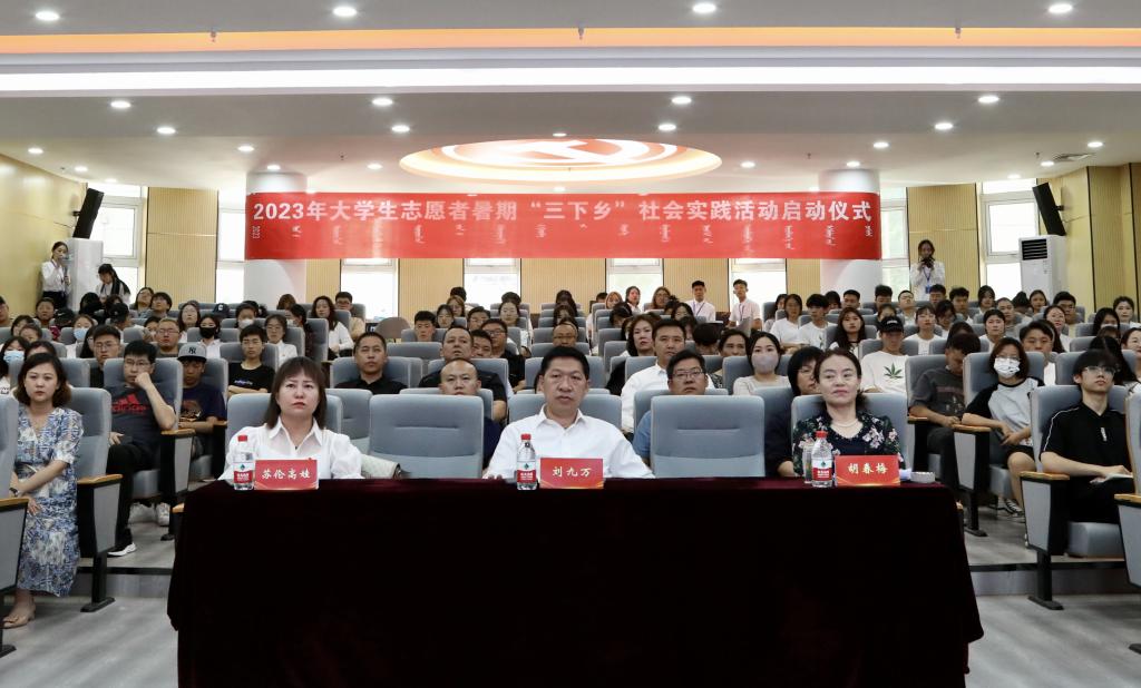 啟動儀式上,團委書記蘇倫高娃宣讀了《呼和浩特民族學院2023年大學生志愿者暑期“三下鄉”社會實踐活動的通知》。實踐團隊指導教師代表斯日古冷和實踐團隊志愿者代表吳麗麗同學依次作了表態發言。