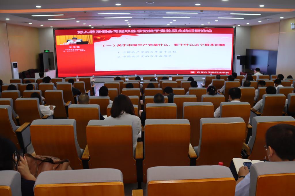按照主題教育工作安排,7月11日上午,在北區(qū)圖書館一樓報(bào)告廳開展主題教育第二期專題讀書班暨黨委理論學(xué)習(xí)中心組(擴(kuò)大)學(xué)習(xí)活動(dòng),組織全校副處級(jí)以上干部參加由自治區(qū)黨委組織部在內(nèi)蒙古干部網(wǎng)絡(luò)學(xué)院“北疆云講堂”舉辦的學(xué)習(xí)貫徹習(xí)近平新時(shí)代中國(guó)特色社會(huì)主義思想系列直播培訓(xùn),深入學(xué)習(xí)領(lǐng)會(huì)習(xí)近平總書記關(guān)于黨的歷史的重要論述。