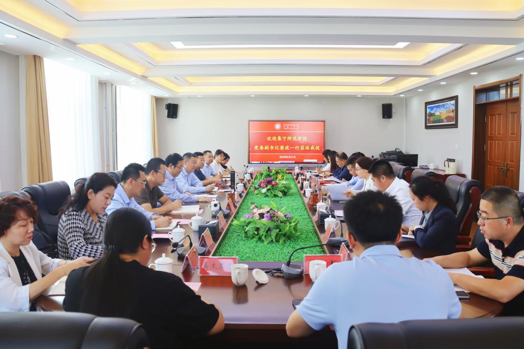 會上,梁正簡要介紹了集寧師范學院學院情況及來意,胡春梅就我校開展主題教育的基本情況和特色亮點以及經驗做法作了簡要介紹。黨政辦主任朝格吉樂圖圍繞主題教育總體概況作了匯報交流。