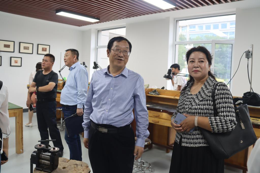 會后,梁政一行參觀了我校民族團結文化長廊、時代楷模長廊、體育學院傳統項目訓練基地、美術學院皮藝制作工作室。