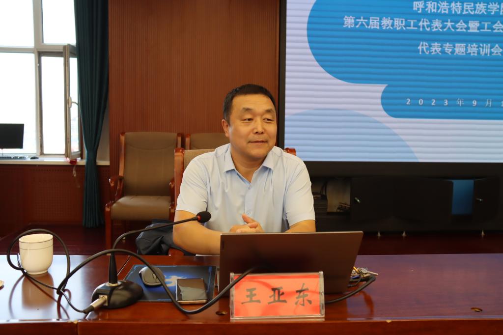 按照呼和浩特民族學院第六屆教職工代表大會暨工會會員代表大會籌備方案,9月14日下午,學校邀請自治區工會事業發展中心副教授王亞東在綜合樓12樓會議室舉辦了教代會代表專題培訓講座。學校第六屆教代會、工會會員代表參加培訓會,校黨委委員、組織部部長吳阿古拉主持會議。