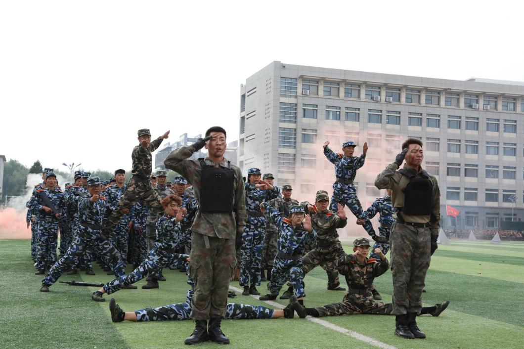 各方隊(duì)踏著整齊的步伐,喊著響亮的口號(hào),以飽滿(mǎn)昂揚(yáng)的精神狀態(tài)列隊(duì)走過(guò)主席臺(tái)。2023級(jí)軍訓(xùn)新生分別展示了圖形變化、女子旗語(yǔ)、擒敵拳、女子捕俘刀、模擬戰(zhàn)場(chǎng)等具有高水平軍事素養(yǎng)的演練項(xiàng)目,充分展現(xiàn)了民院學(xué)子朝氣蓬勃、積極向上的精神風(fēng)貌。他們用“請(qǐng)黨放心、強(qiáng)國(guó)有我”的錚錚誓言表達(dá)了勵(lì)志成才、報(bào)效祖國(guó)的堅(jiān)定信念。