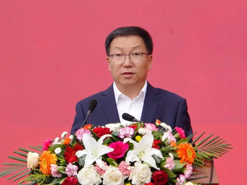 高喜天在主持大會(huì)時(shí)勉勵(lì)同學(xué)們珍惜大學(xué)時(shí)光,淬煉自己、完善自己,學(xué)有所成、學(xué)有所獲,在青春的賽道上奮力奔跑出優(yōu)異成績(jī)。