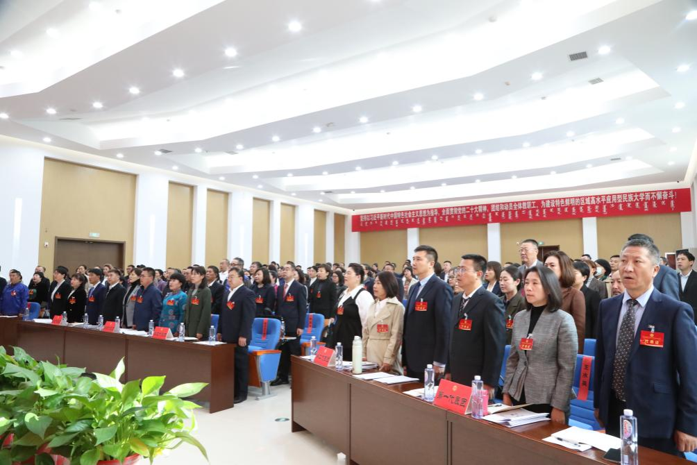 報告指出,未來三年是學校在新起點上轉型發展、高質量發展的重要時期。學校要以習近平新時代中國特色社會主義思想為引領,深入貫徹落實黨的二十大精神,認真貫徹落實中央及自治區的決策部署,以鑄牢中華民族共同體意識為主線,落實立德樹人根本任務,結合學校“十四五”規劃,增強核心競爭力,重點推動政治領航、質量強校、特色立校、人才興校、改革活校、從嚴治校“六個工程”,強化服務保障,推進美麗校園、智慧校園、平安校園建設,推動學校高質量發展,努力把學校建設成為特色鮮明的區域高水平應用型民族大學,為強國建設、民族復興,為助力完成自治區兩件大事作出呼和浩特民族學院新的更大的貢獻。