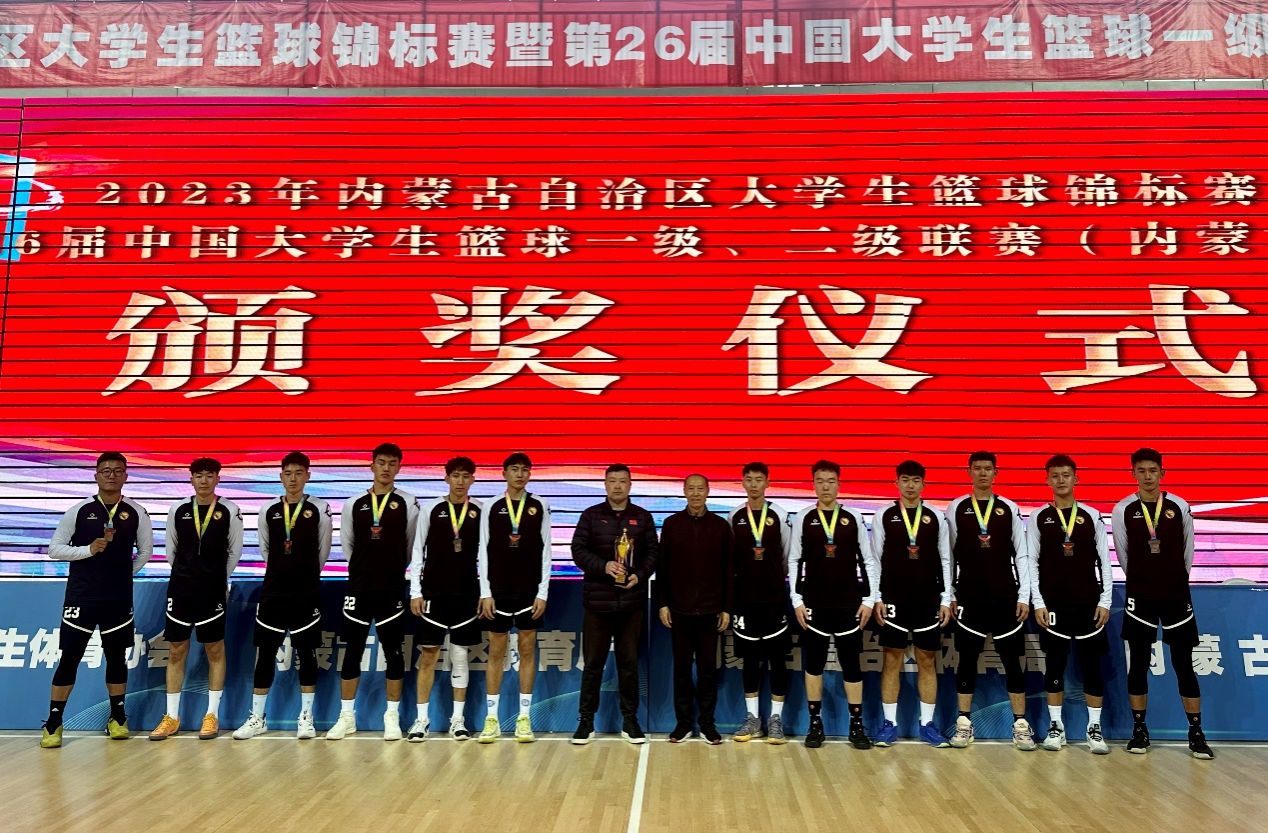 11月5日,由內蒙古自治區教育廳、內蒙古自治區體育局主辦,內蒙古學生體育協會協辦,內蒙古財經大學承辦的2023年自治區大學生籃球錦標賽暨26屆中國大學生籃球一級聯賽(內蒙古賽區)在財經大學落幕。此次比賽中,我校男子籃球隊取得了超級組第三(季軍)的優異成績。