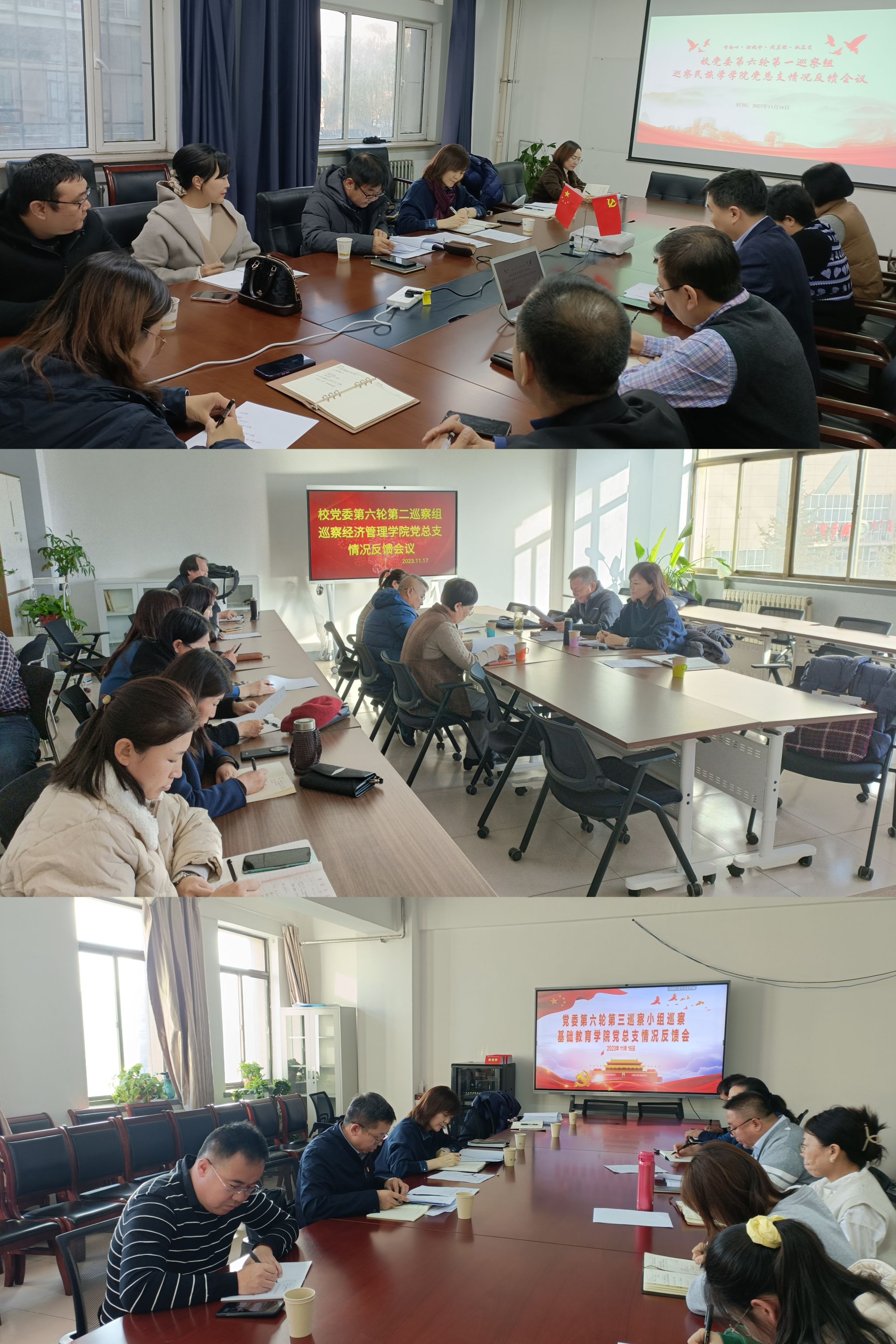 隨后,校黨委第六輪巡察三個小組分別赴民族學學院、經濟管理學院和基礎教育學院召開第六輪巡察意見反饋會議,傳達巡察工作領導小組會議精神和集中反饋會議上王冬梅書記的講話精神,并反饋本次巡察情況。會上,三個被巡察單位的主要負責同志做表態發言。