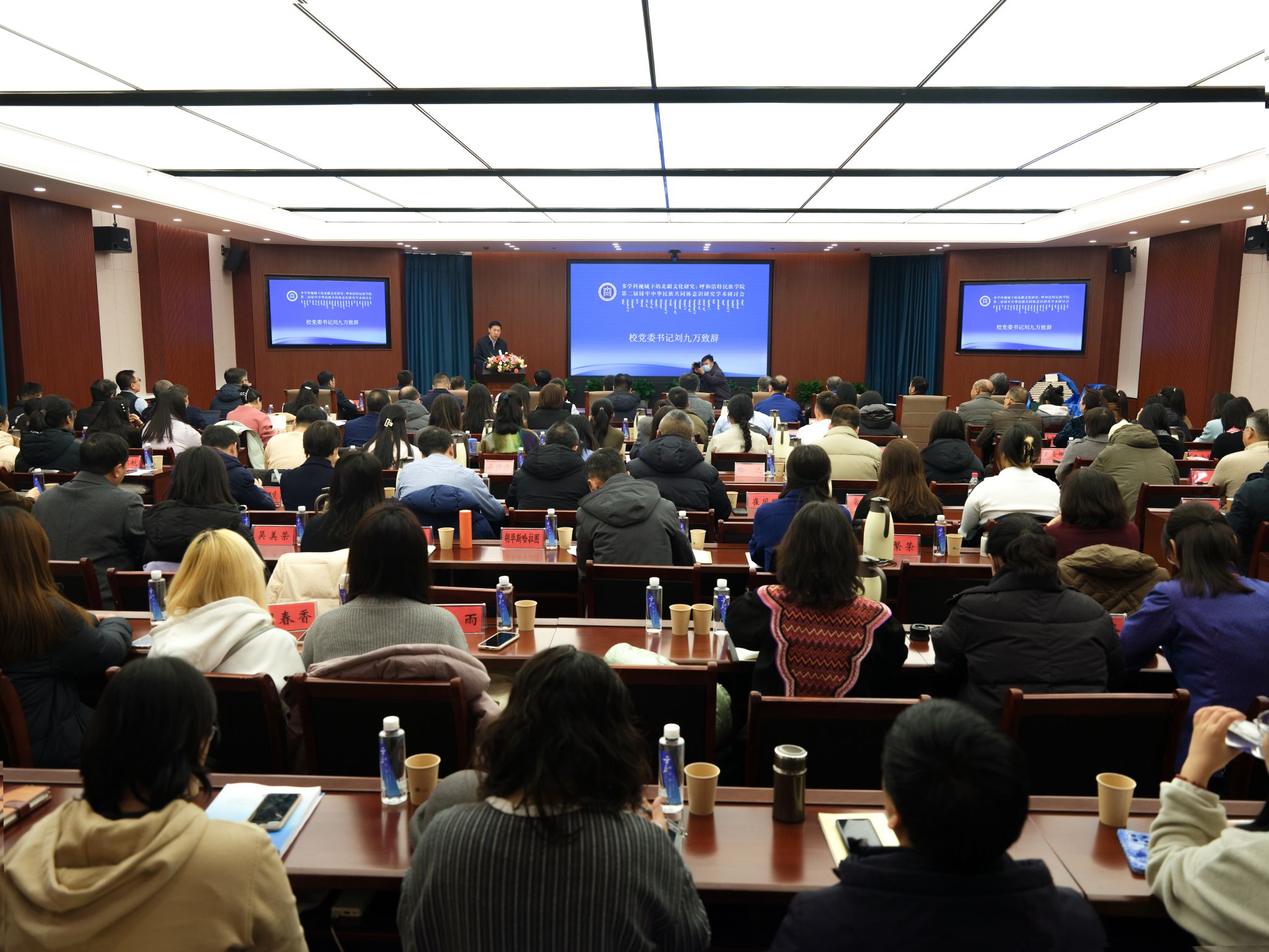 11月24至26日,學校鑄牢中華民族共同體意識研究基地舉辦了校慶70周年系列活動之“多學科視域下的北疆文化研究:第二屆鑄牢中華民族共同體意識研究學術研討會"。來自清華大學、中國人民大學、中央民族大學、蘭州大學、西北民族大學、新疆師范大學以及區內各高校、科研機構的80余名專家學者出席本次學術研討會。校黨委書記、研究基地主任劉九萬出席會議并致開幕辭,校黨委副書記、校長韓偉新主持開幕式。校黨委委員、副校長高喜天主持主旨報告。