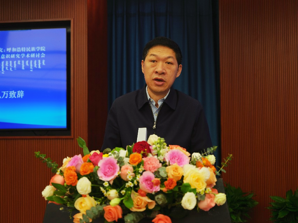 鑄牢中華民族共同體意識研究基地學術委員會主任、長江學者烏云畢力格教授向呼和浩特民族學院70華誕表示熱烈的祝賀。烏云畢力格表示,北疆文化是中華文化的重要組成部分,它體現了中華文明博大精深,兼容并包的獨特魅力。他強調,研究北疆文化,需要樹立正確的中華民族歷史觀,需要多學科之間的交流合作。