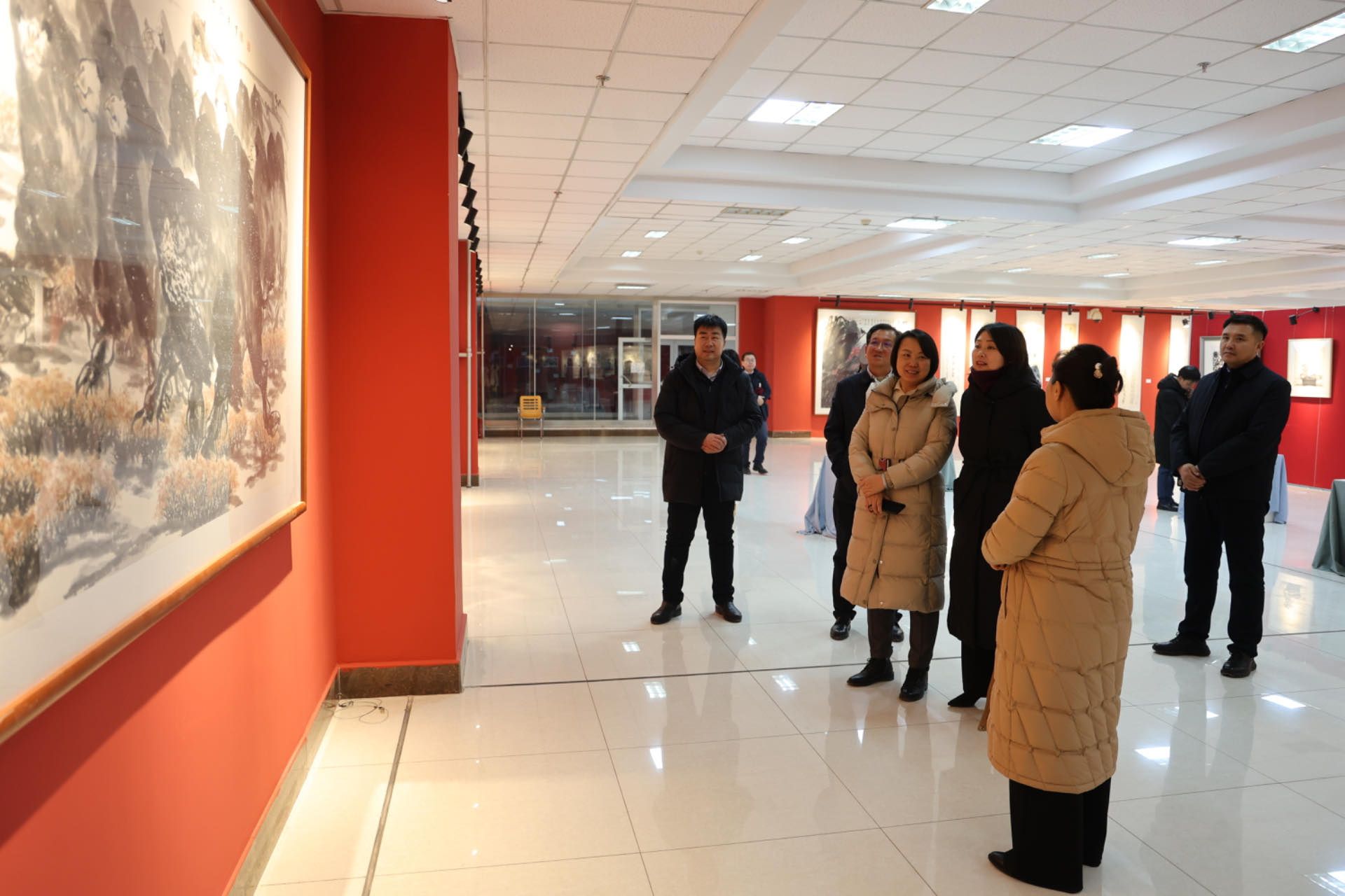 座談結束后,陶文輝一行參觀了民族團結進步文化長廊、時代楷模長廊、校史館、師生美術作品展等。