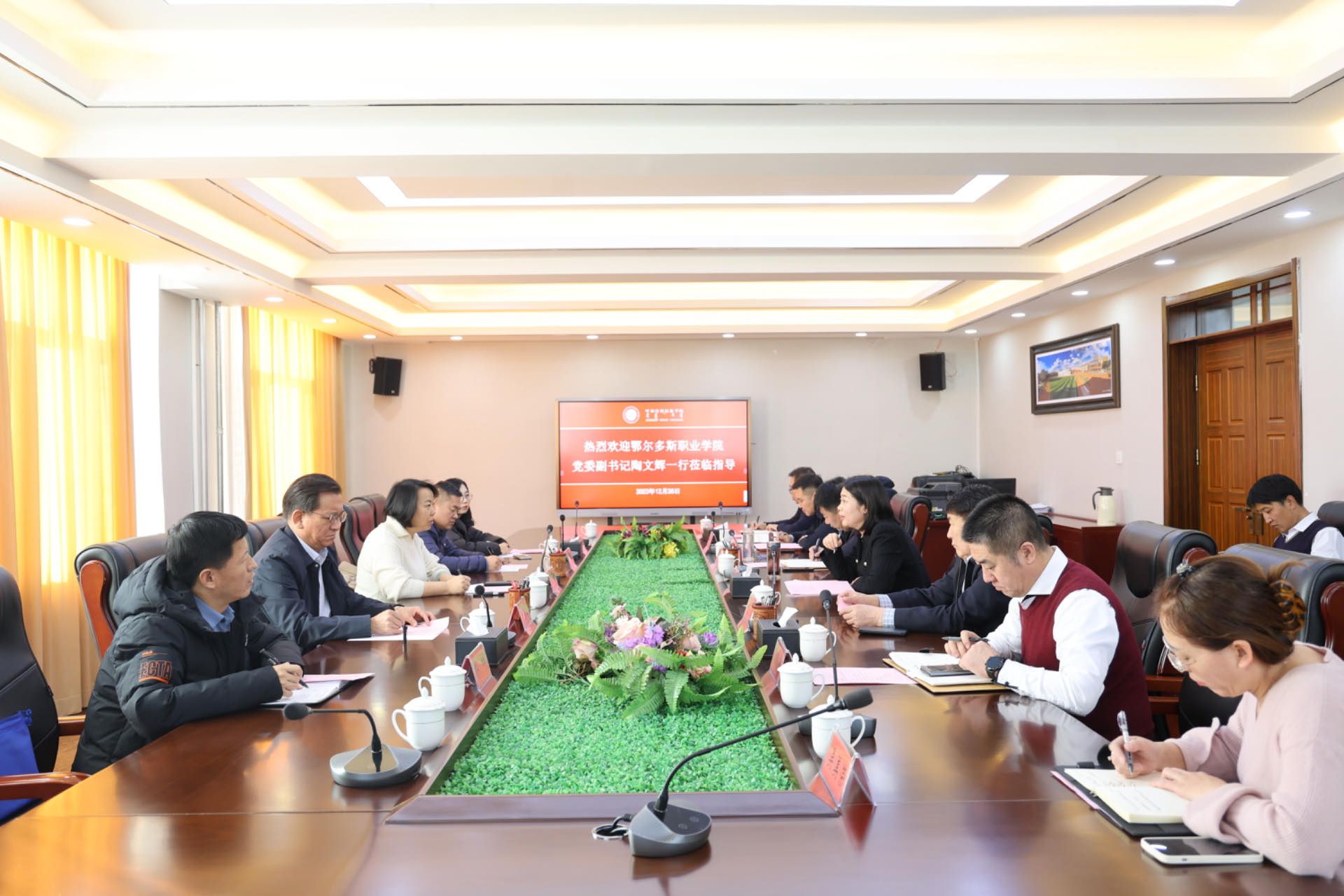 12月26日下午,鄂爾多斯職業學院黨委副書記陶文輝一行到校考察調研。校黨委副書記、校長韓偉新,黨委副書記格根哈斯等領導出席考察調研活動。