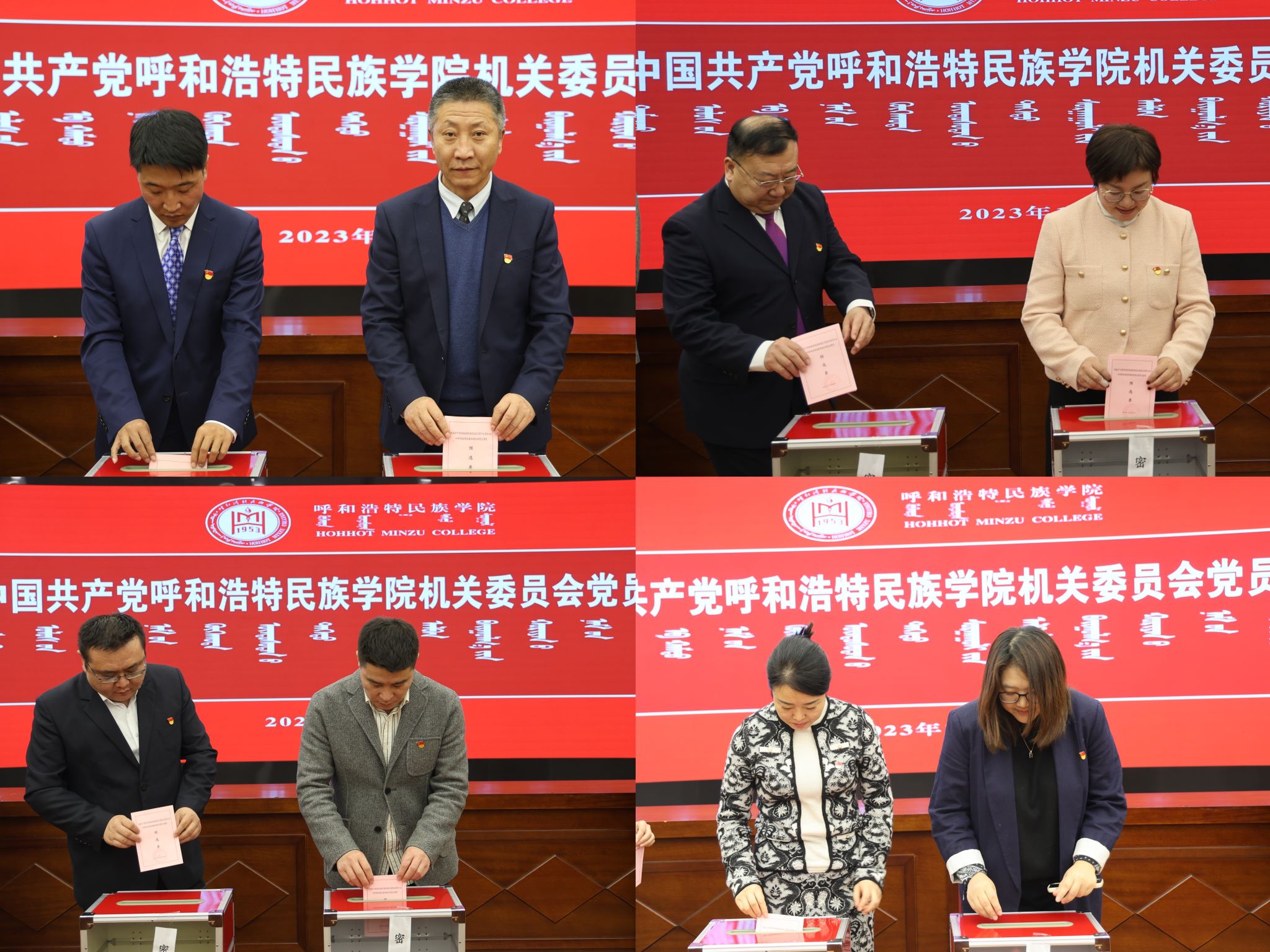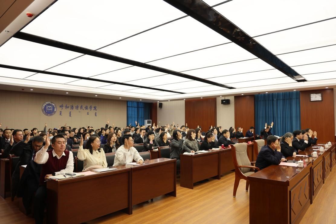 大會討論通過了《中國共產黨呼和浩特民族學院機關委員會委員選舉辦法(草案)》、新一屆黨委委員候選人名單、總監票人、監票人名單,宣布了計票人名單。