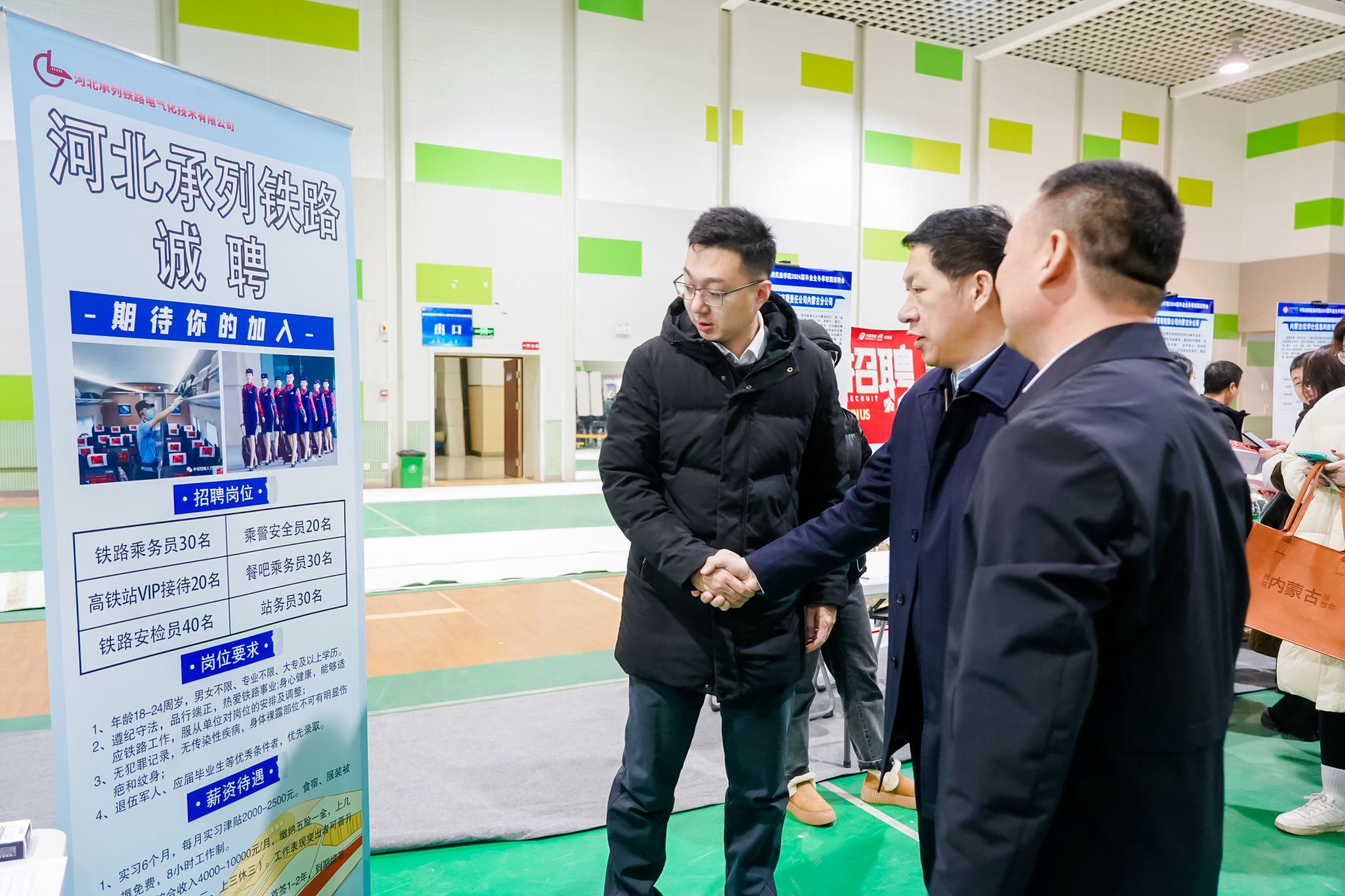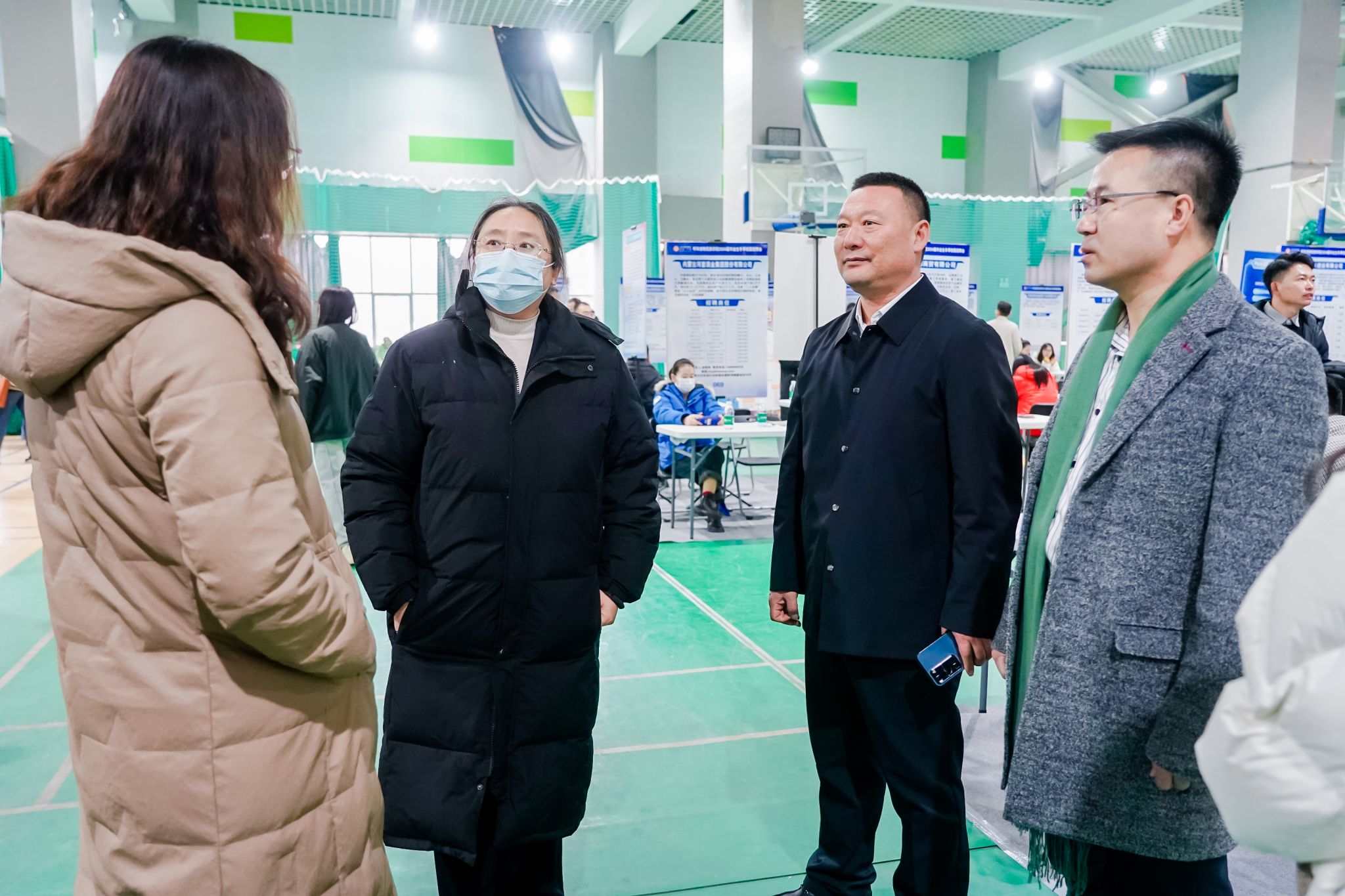 12月29日上午,由內(nèi)蒙古自治區(qū)教育廳主辦,我校承辦的“呼和浩特民族學(xué)院2024屆畢業(yè)生冬季校園招聘會”在學(xué)校體育館成功舉辦。自治區(qū)教育廳高校學(xué)生就業(yè)創(chuàng)業(yè)服務(wù)中心主任于榮娟一行蒞臨招聘會現(xiàn)場指導(dǎo)工作,校黨委書記劉九萬,黨委副書記、校長韓偉新,黨委委員、紀(jì)委書記王冬梅,黨委委員、副校長高喜天、額爾敦布和深入招聘會現(xiàn)場與參會企業(yè)和畢業(yè)生親切交流,對用人單位崗位需求、畢業(yè)生的就業(yè)意向進(jìn)行了溝通了解。