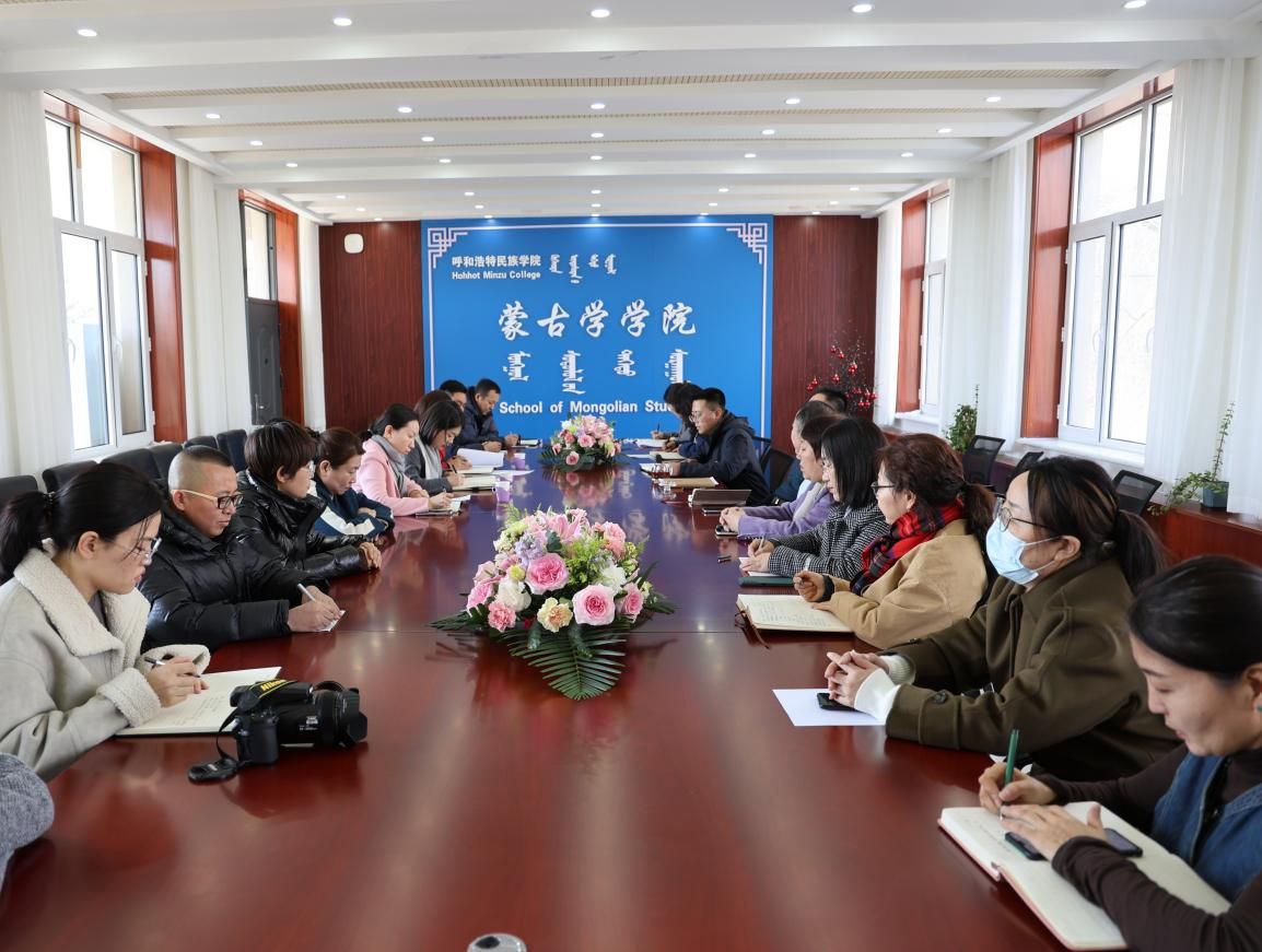 3月6日下午,校黨委副書記格根哈斯一行深入蒙古學學院調研指導工作。蒙古學學院班子成員和全體沒課教師參會。