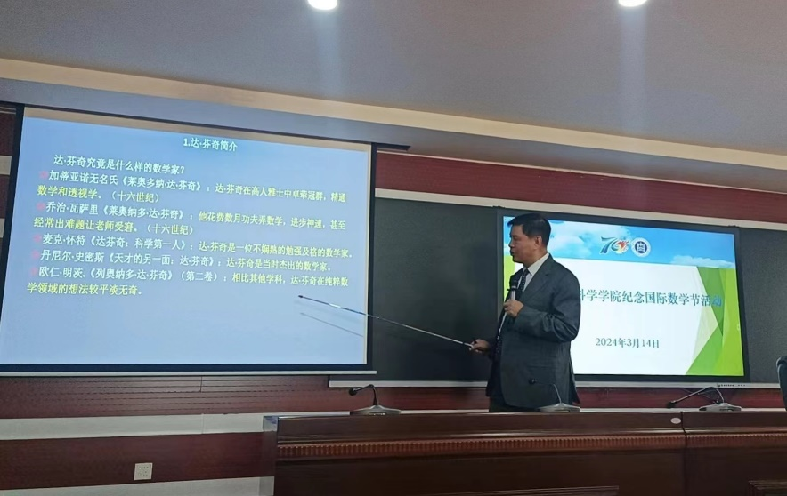 活動邀請北京航空航天大學教授、博士生導師郝飛,內蒙古師范大學二級教授、博士生導師代欽作分別作了題為《網絡化系統中事件觸發控制的若干問題及討論》《達·芬奇的數學世界》的專題講座,兩位專家學識淵博、專業基礎深厚,在報告中緊密結合學科專業實際,旁征博引,深入闡釋了數學理論與文化的內涵。此次報告對提高教師教育教學水平、激發學生學習數學熱情和加強學院數學文化建設起到了積極作用。