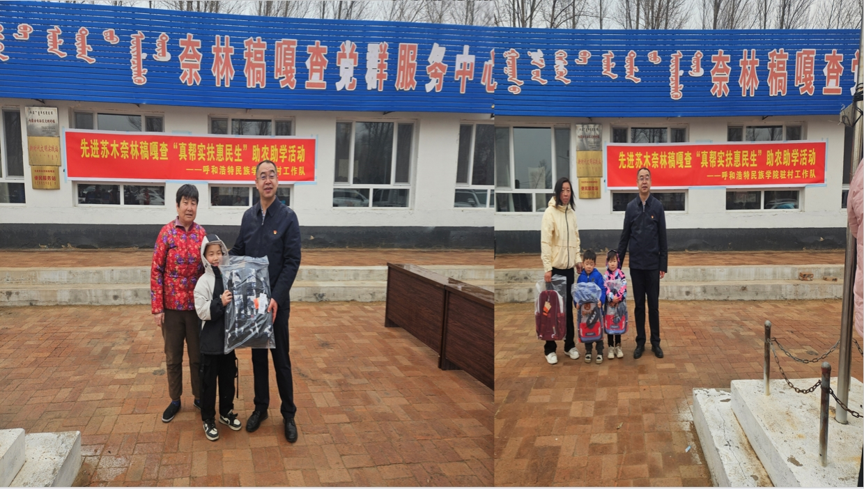 活動上,學校向包聯幫扶的奈林稿嘎查義務教育階段的每名學生捐贈愛心雙肩書包一個,并為家里有兩名學生的農牧戶每戶捐贈2袋化肥、為監測戶每戶捐贈4袋化肥,以此鼓勵學生、學生家庭及困難群眾保持積極向上的生活態度,用勤勞自立將日子越過越好。