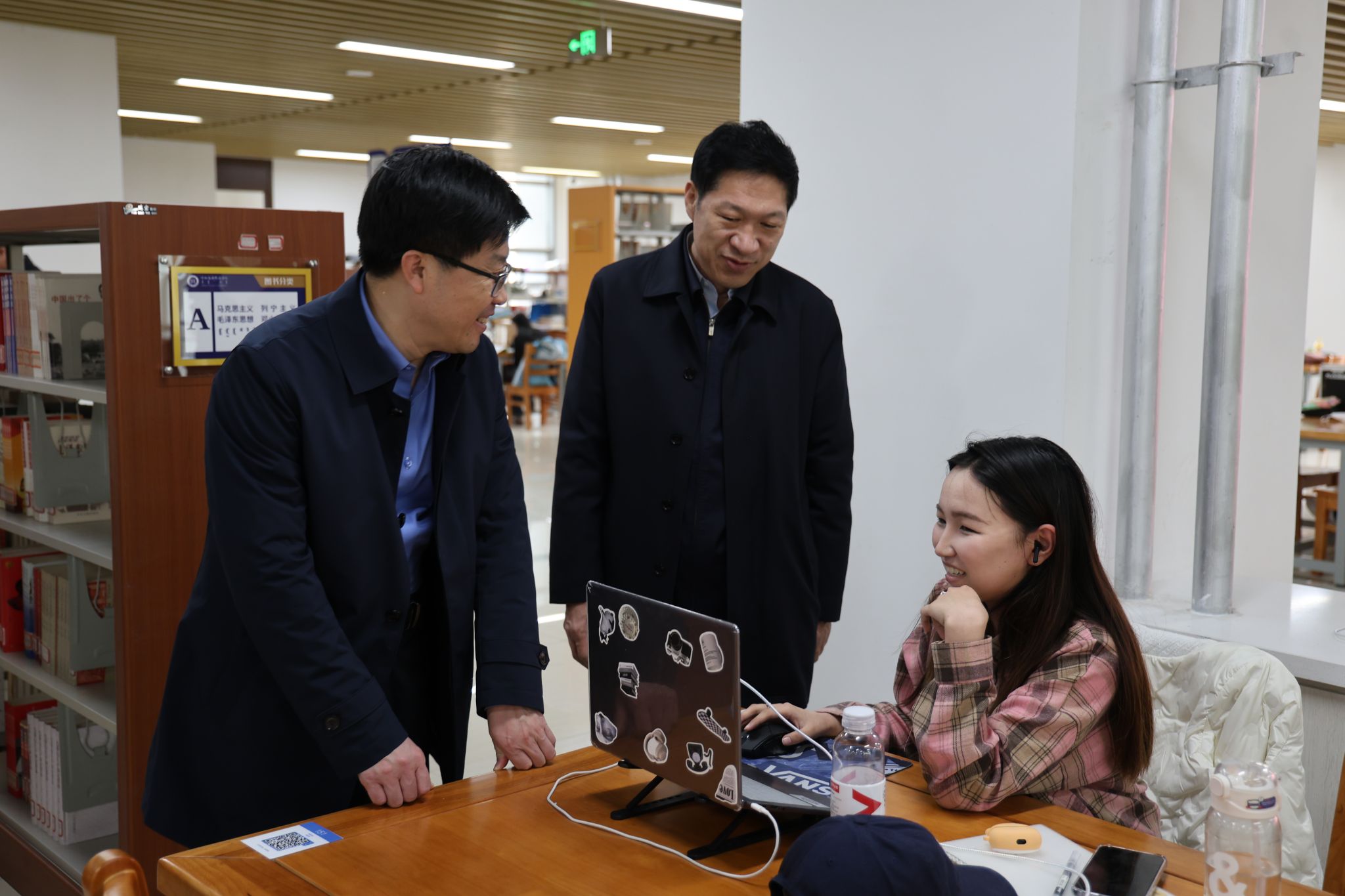 為進一步落實好立德樹人根本任務,全面抓好校園安全穩定工作,3月18日下午,校黨委書記劉九萬,黨委副書記、校長韓偉新,黨委委員、副校長劉瑞鴻一行深入圖書館、工會之家、老干部活動中心等地實地走訪調研,與相關人員進行深入交流,全面了解學生學習讀書、教職工文化生活和離退休人員娛樂活動情況,檢查指導圖書館、工會、離退休人員工作處開展服務保障工作情況。