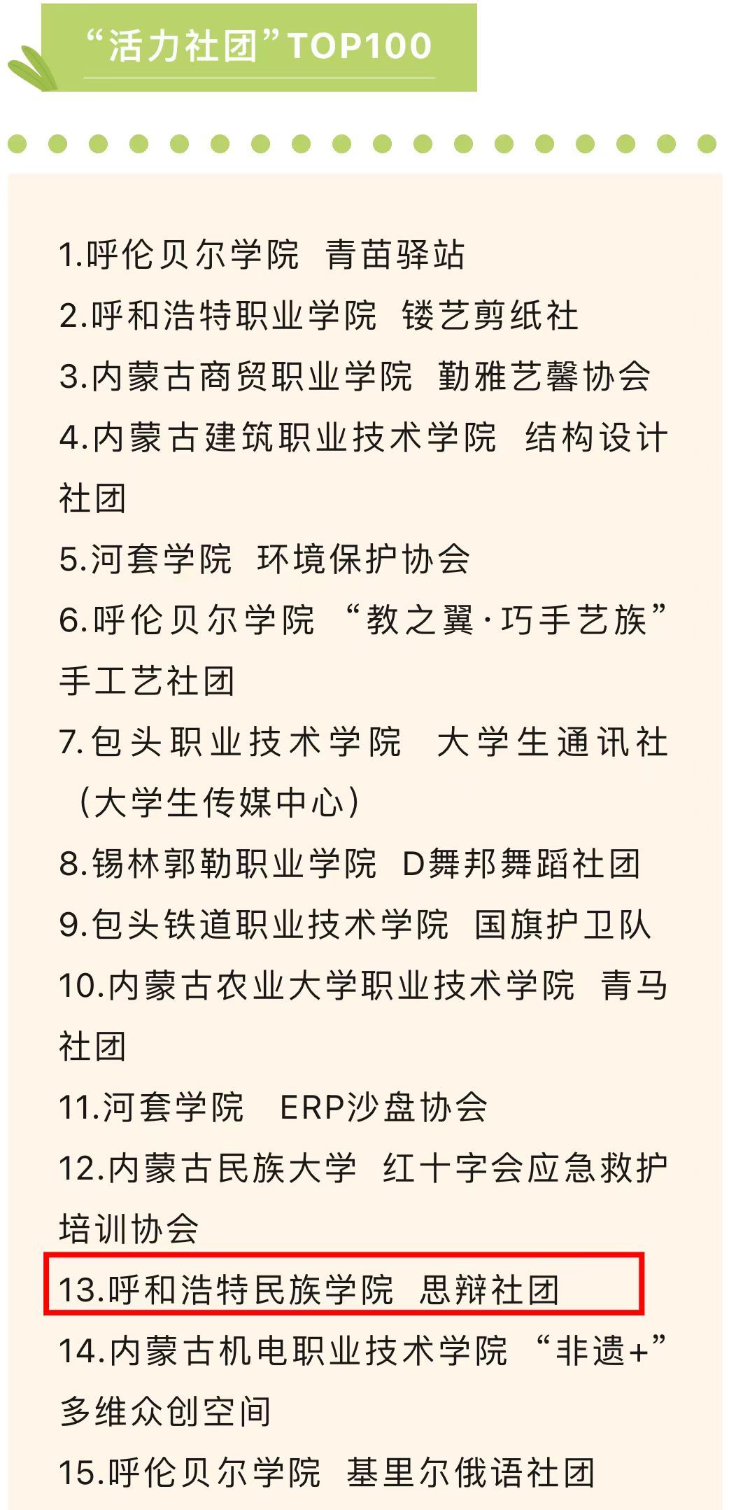 我校“思辯社團”在自治區團委學校部舉辦的2023-2024學年高校“活力社團”風采展示活動中成功入選“活力社團”TOP100,并榮獲第13名的佳績!