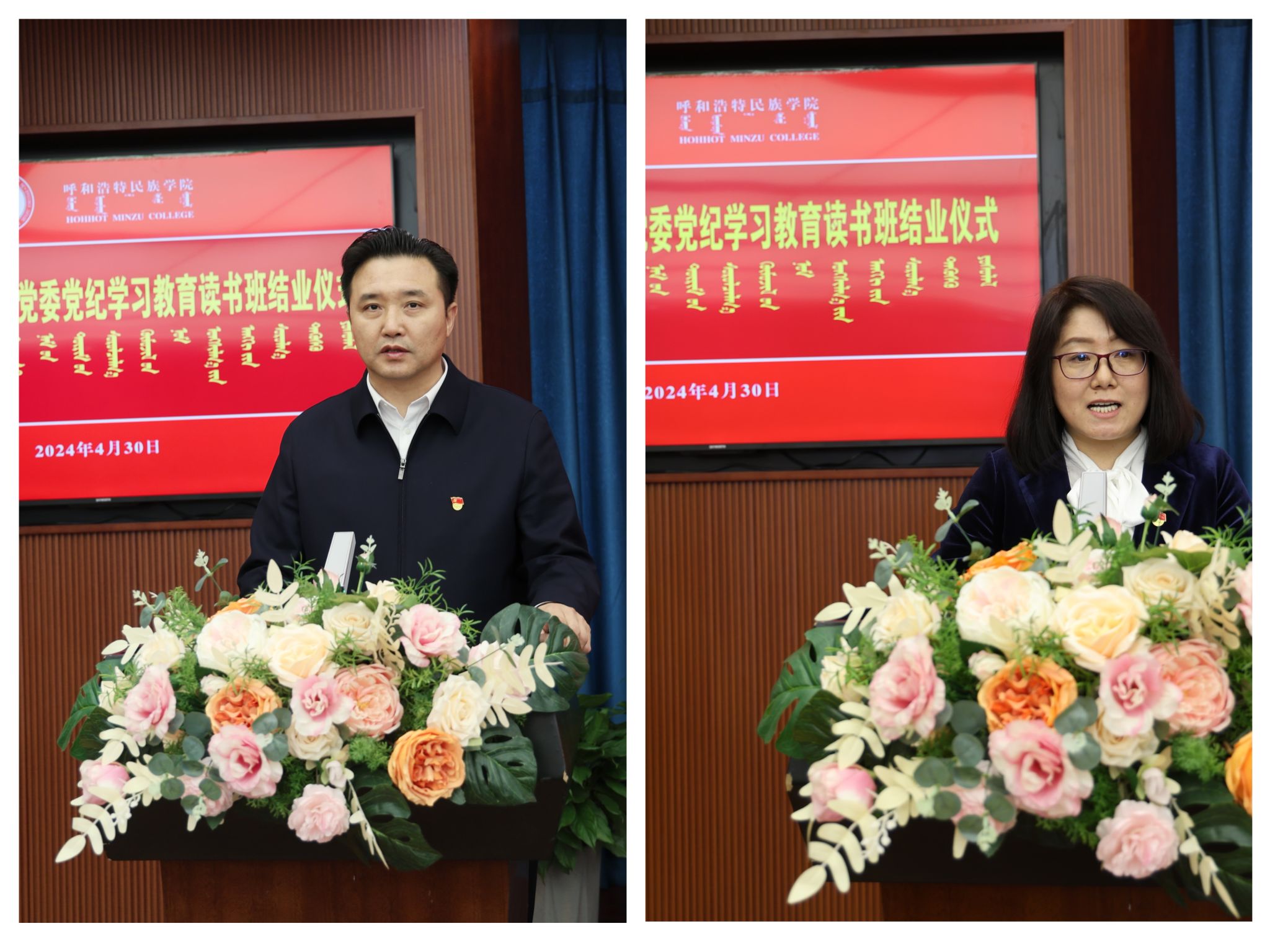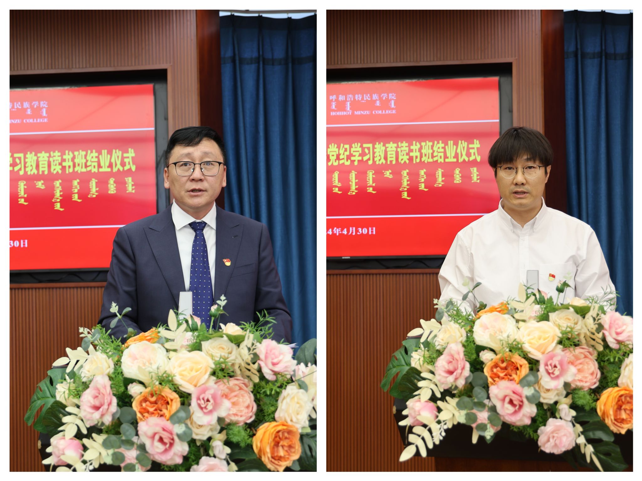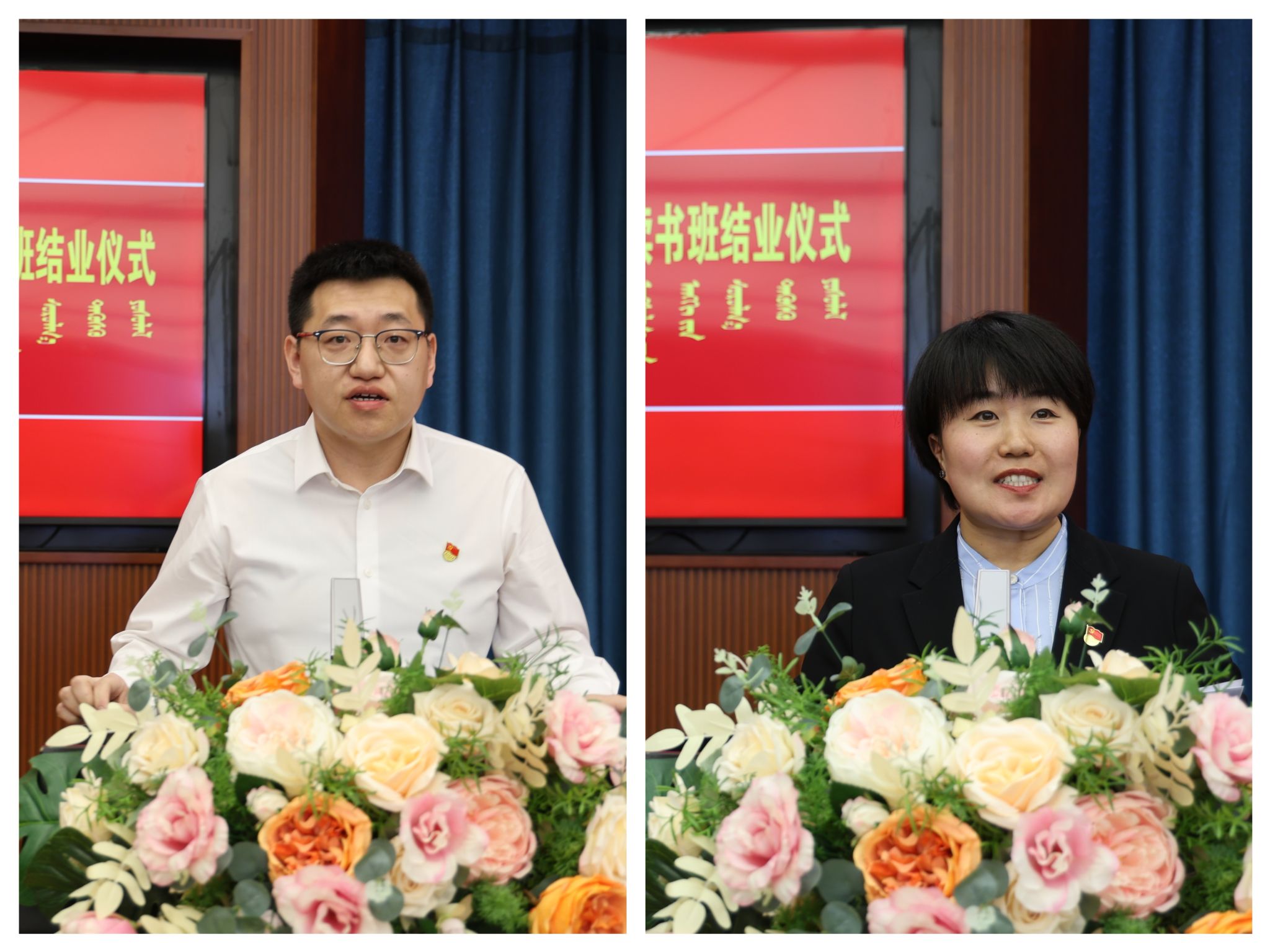 結班儀式上,宣傳部負責人張海峰、法學院黨總支書記烏蘭其其格、新聞傳媒學院院長額爾敦畢力格、紀委監察專員辦公室副主任張子涵、財務處副處長徐多、學前教育學院副院長朱烏英嘎等6名同志結合思想和工作實際作了研討交流發言。