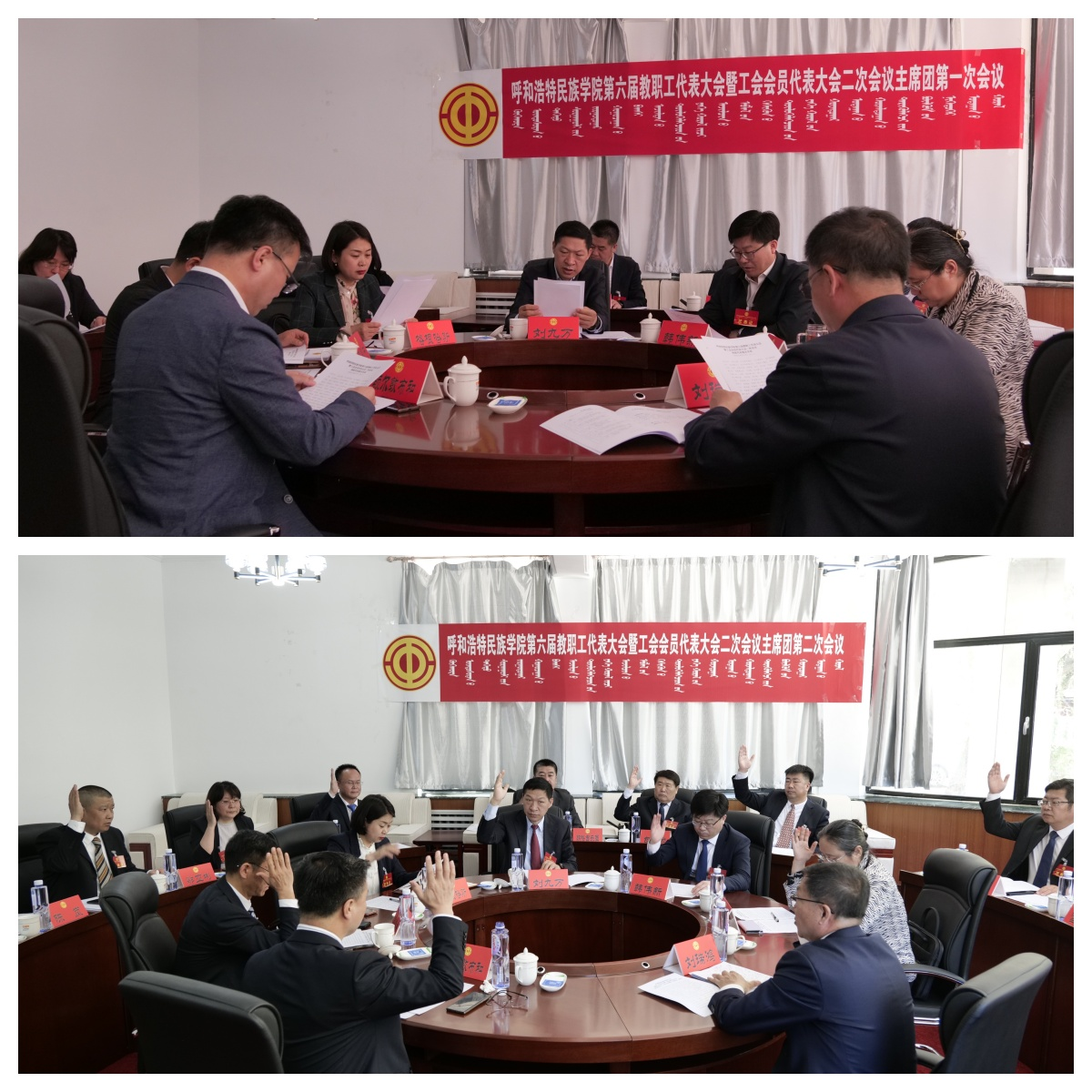 會議舉行期間,學校第六屆教職工代表大會暨工會會員代表大會主席團在圓桌會議室舉行第一次會議,會議以舉手表決的方式全票通過了列席代表、特邀代表建議名單、大會增補代表的決議(草案)、改選第六屆教職工代表大會執(zhí)行委員會主任人選建議名單、大會日程(草案)。舉行主席團第二次會議,審議通過了《校長工作報告決議》(草案)和《工會工作報告決議》(草案)。