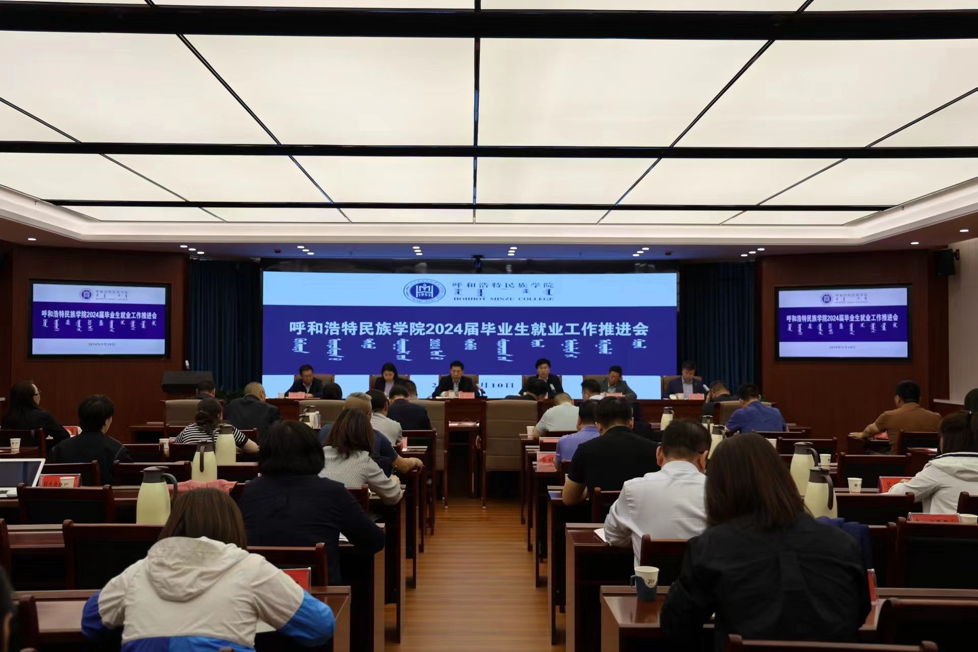 為深入貫徹落實教育部、自治區教育廳2024屆高校畢業生就業工作會議有關精神和重要部署,推進學校2024屆畢業生就業工作有效開展,5月10日,學校召開2024屆畢業生就業工作推進會,校黨委書記劉九萬,黨委副書記、校長韓偉新等校領導出席會議。會議由黨委委員、副校長額爾敦布和主持。