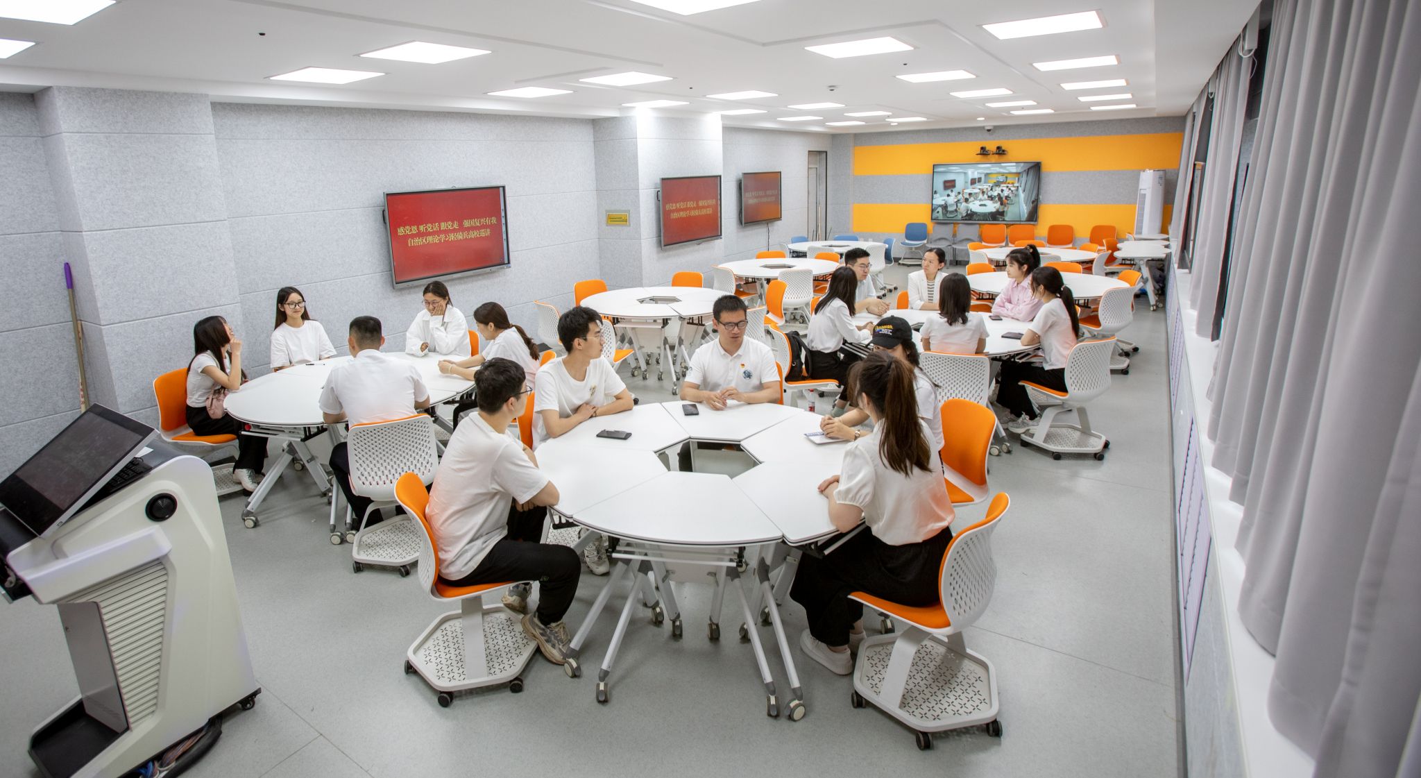 巡講活動結束后,第一小分隊六位宣講員來到教學樓,與我校青年學生進行了現場互動交流。互動現場交流頻繁,踴躍發言,氣氛活躍,充分展現了新時代青年朝氣蓬勃的精神風貌。