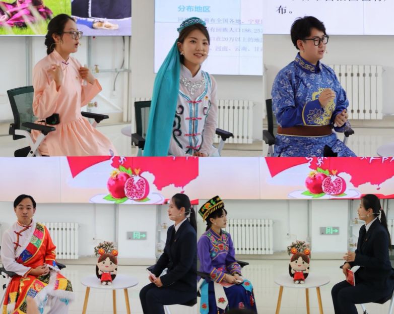 活動中,回族、藏族、蒙古族、滿族、仫佬族五位同學分別介紹了各自民族的風俗習慣、分享了自己的民族團結故事,并與觀眾進行了互動。親切真實的話語,感動了現場眾人。