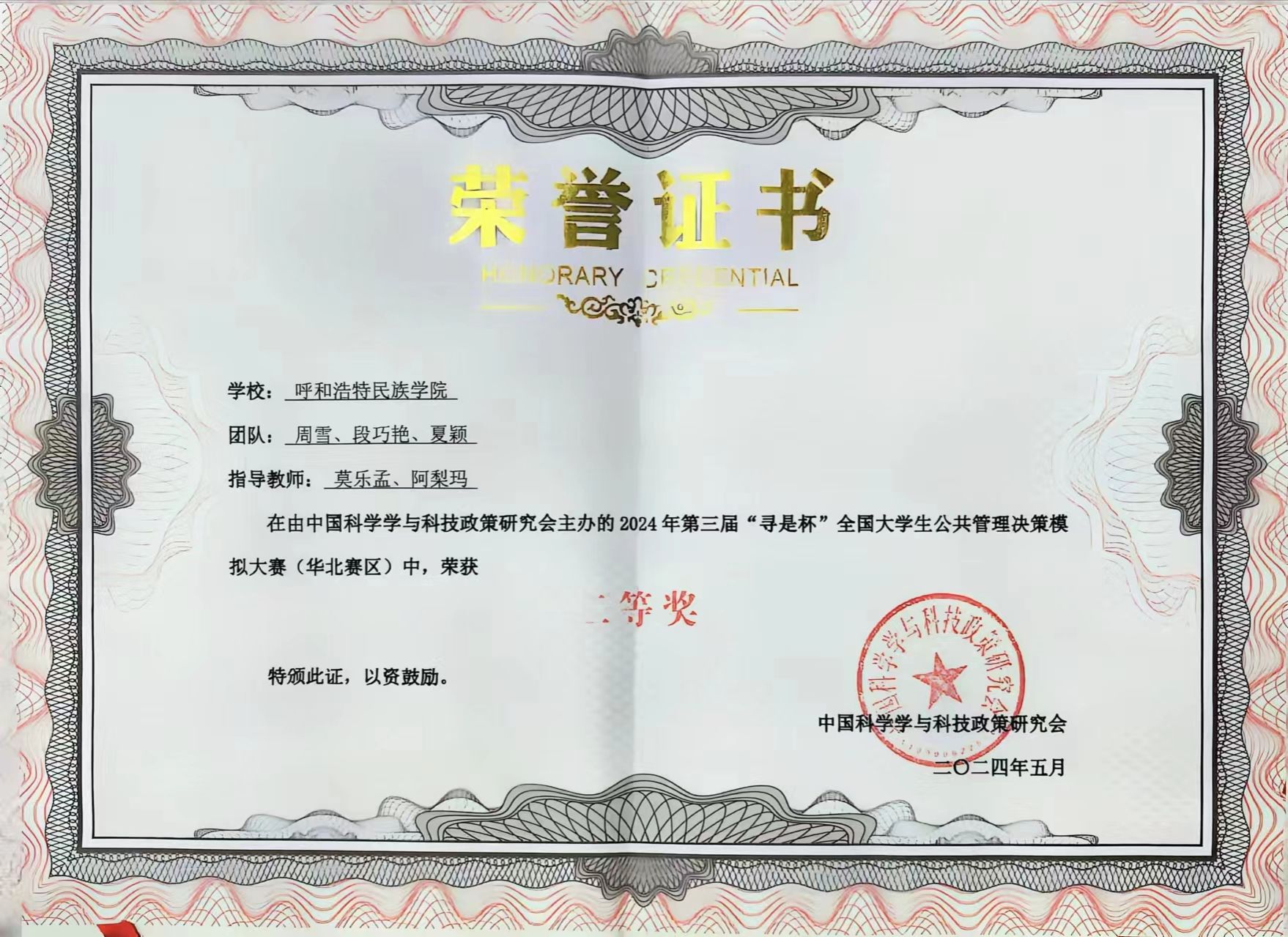 5月25日至26日,第三屆“尋是杯”全國大學生公共管理決策模擬大賽(華北賽區)暨公共管理實踐教學研討會在中央財經大學舉行。大賽由中國科學學與科技政策研究會主辦、中央財經大學政府管理學院承辦。我校組織行政管理專業學生組隊參賽,與來自華北地區的40支參賽隊同臺競技,最終獲得大賽二等獎。