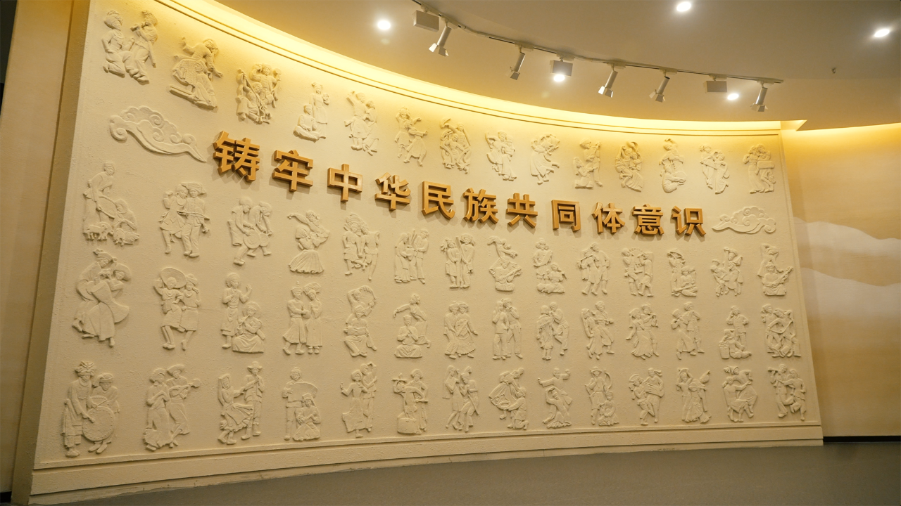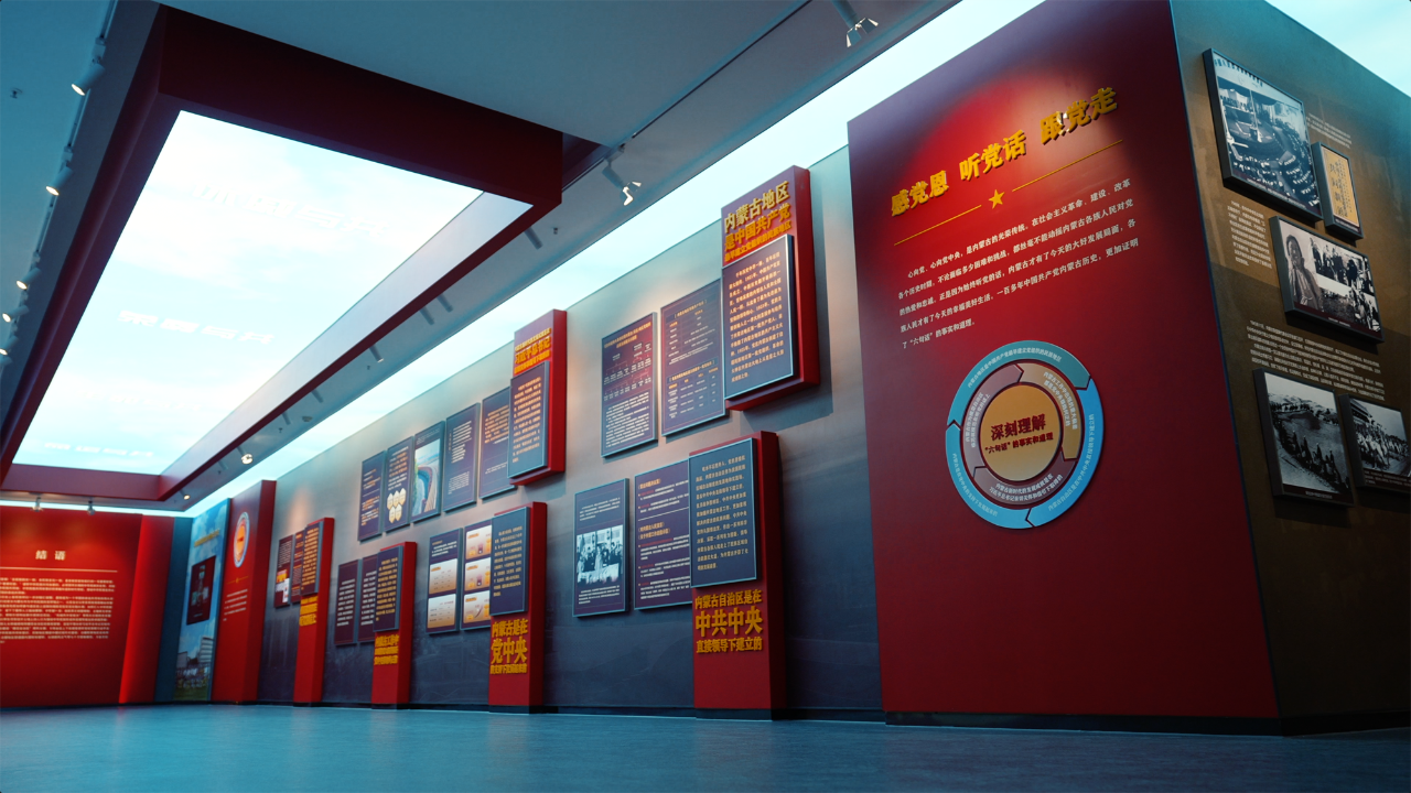 我校鑄牢中華民族共同體意識教育館布展面積1500㎡,主題展以習近平總書記關于加強和改進民族工作的重要思想為指導,以“四個共同”的中華民族歷史觀為主線,以《中華民族共同體概論》為參照,以各民族交融匯聚的中華民族共同體的起源、形成和發展為脈絡,通過中華文明多元一體起源,“我國百萬年的人類史、一萬年的文化史、五千多年的文明史”;“我們遼闊的疆域是各民族共同開拓的”“我們悠久的歷史是各民族共同書寫的”“我們燦爛的文化是各民族共同創造的”“我們偉大的精神是各民族共同培育的”;黨的民族工作百年光輝歷程和歷史成就以及內蒙古自治區堅定不移走中國特色解決民族問題的正確道路等主要內容,生動詮釋“我們從哪里來”“我們是誰”“我們要到哪里去”的邏輯命題。