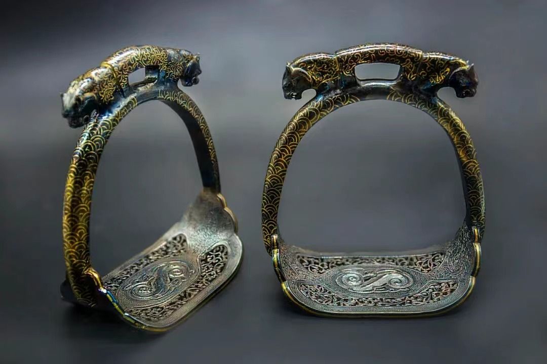 金屬工藝《鐵挫金虎頭馬鐙》15cm×8cm×23cm(2件)