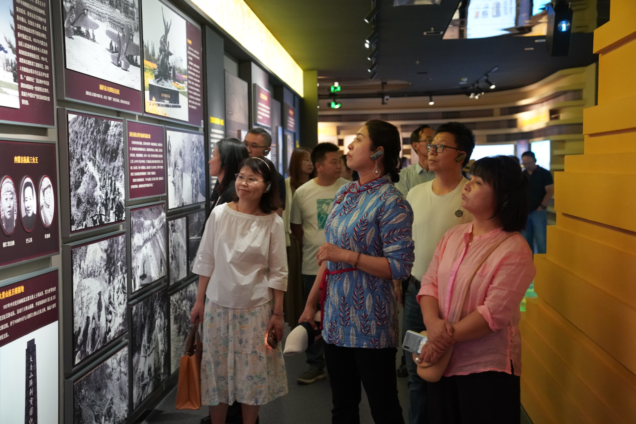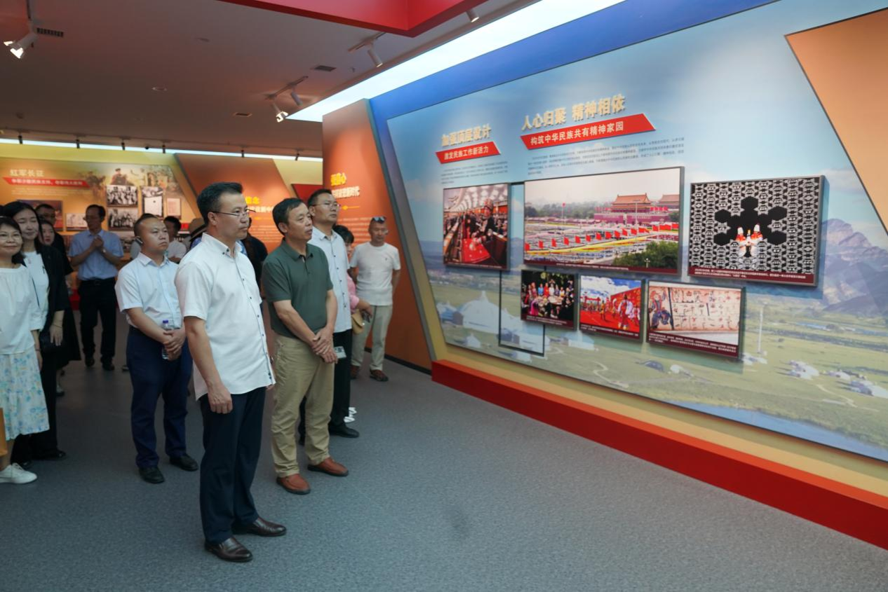 留聯(lián)會(huì)一行首先參觀了學(xué)校鑄牢中華民族共同體意識(shí)教育館。展覽內(nèi)容以習(xí)近平總書(shū)記提出的“鑄牢中華民族共同體意識(shí),就是要引導(dǎo)各族人民牢固樹(shù)立休戚與共、榮辱與共、生死與共、命運(yùn)與共的共同體理念”重要思想為指引,以鑄牢中華民族共同體意識(shí)為主線,以《中華民族共同體概論課》為參照,以各民族交融匯聚的中華民族共同體的起源、形成和發(fā)展為脈線,以沉浸式的中華民族共同體時(shí)空隧道、藝術(shù)浮雕、數(shù)字投影、答題測(cè)試、歷史照片和珍貴展品等多種形式,綜合展示多元一體的中華民族形象和命運(yùn)共同體的偉大歷程,具有較高學(xué)術(shù)性、專(zhuān)業(yè)性、權(quán)威性和綜合性。