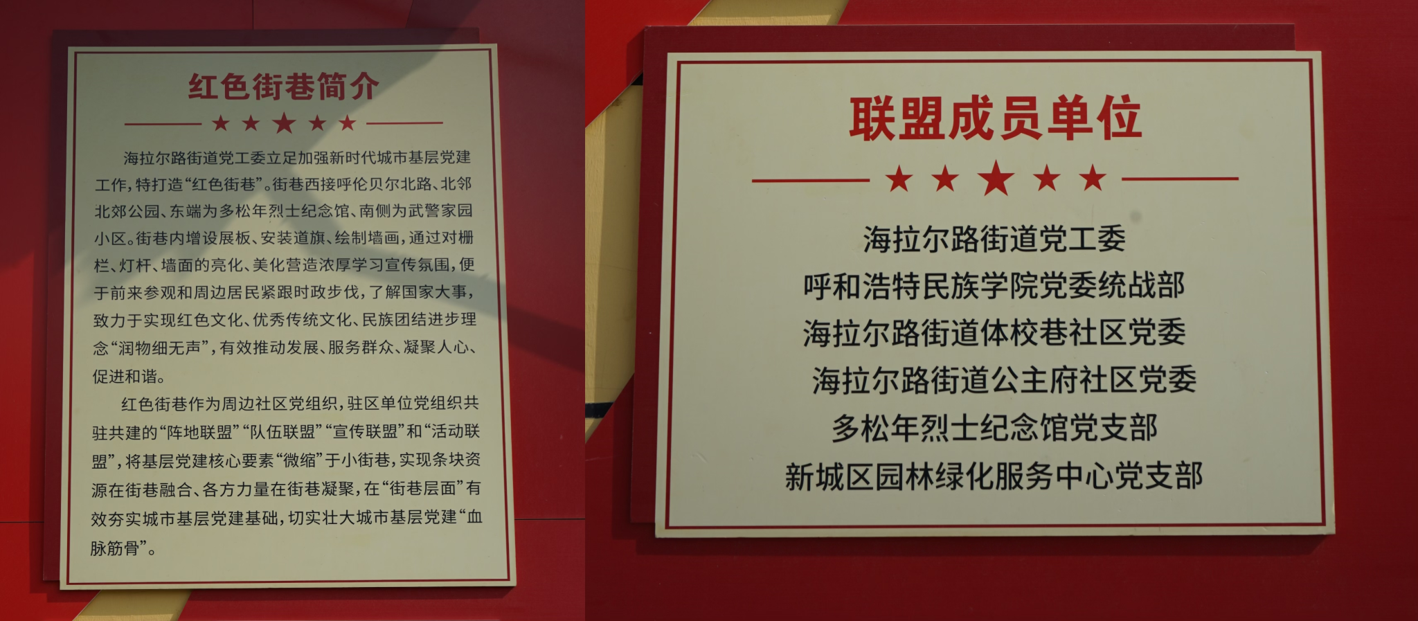 共建單位結(jié)合“紅色街巷”實(shí)際,充分考慮多松年烈士紀(jì)念館、北郊公園和武警家園小區(qū)等地黨建底蘊(yùn)和人文氣息,對(duì)民族團(tuán)結(jié)進(jìn)步文化長(zhǎng)廊和街景花壇進(jìn)行更新升級(jí),實(shí)現(xiàn)了廉政文化、優(yōu)秀傳統(tǒng)文化、民族團(tuán)結(jié)進(jìn)步知識(shí)“潤(rùn)物細(xì)無(wú)聲”的教育作用,起到服務(wù)群眾、凝聚人心、促進(jìn)和諧、推動(dòng)發(fā)展的效果。目前,紅色街巷以22塊展板、14面道旗、2幅墻畫和1個(gè)主題公園等為載體,使鑄牢中華民族共同體意識(shí)抓手有形、受眾有感、教育有效,為構(gòu)筑各民族共有精神家園作出應(yīng)有貢獻(xiàn)。
