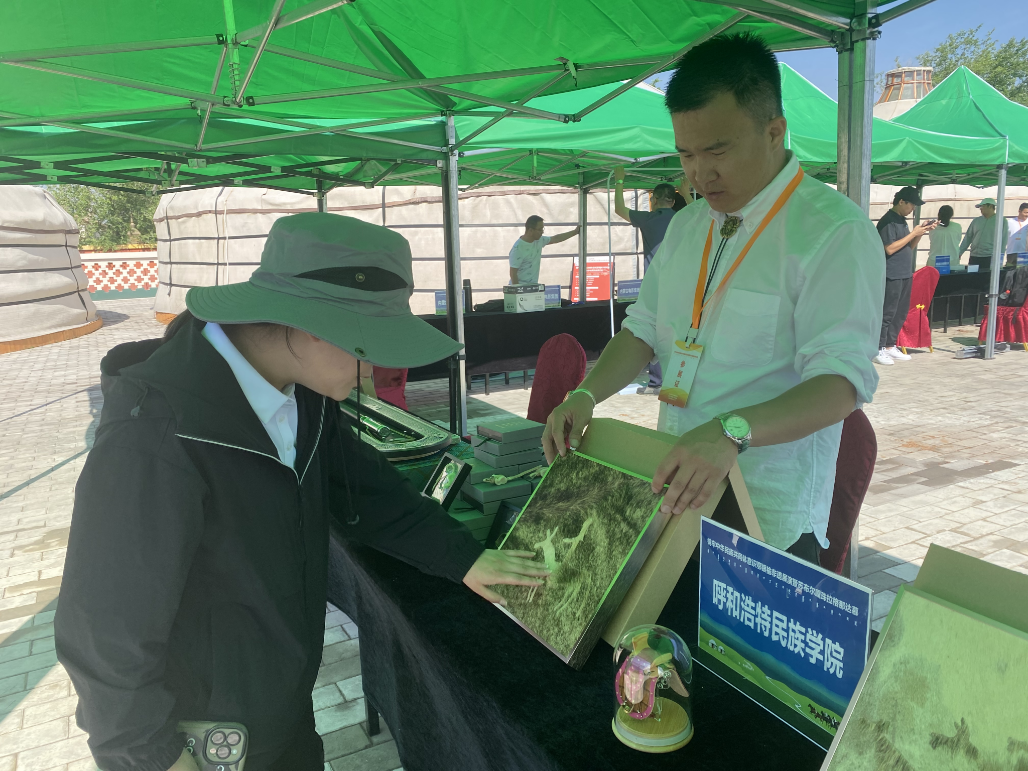 活動(dòng)期間開展鄂銀榆非遺展、信息化成果展示、高校師生作品展示等豐富多彩的活動(dòng)。學(xué)校展陳專區(qū)展出了美術(shù)與設(shè)計(jì)學(xué)院黨外知識(shí)分子、留學(xué)歸國人員、非遺傳承人制作的氈畫、皮畫、金銀工藝品等幾十件作品,展現(xiàn)了學(xué)校在中華優(yōu)秀傳統(tǒng)文化創(chuàng)新性發(fā)展的成果,吸引群眾近距離感受手工藝作品的獨(dú)特魅力,有形有感有效鑄牢中華民族共同體意識(shí),促進(jìn)各民族交往交流交融。