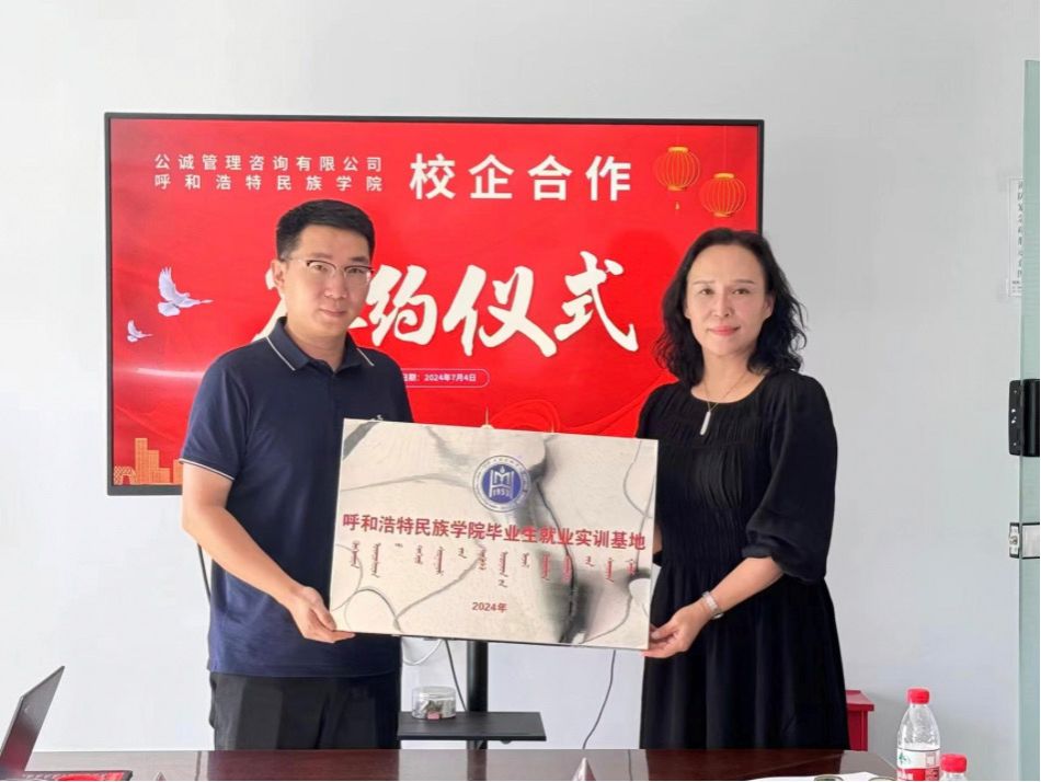 為深化校企合作,實現校企聯動、協同育人,7月4日下午,校黨委委員、紀委書記、監察專員王冬梅一行赴公誠管理咨詢有限公司內蒙古分公司開展訪企拓崗活動,并舉行簽約授牌儀式。