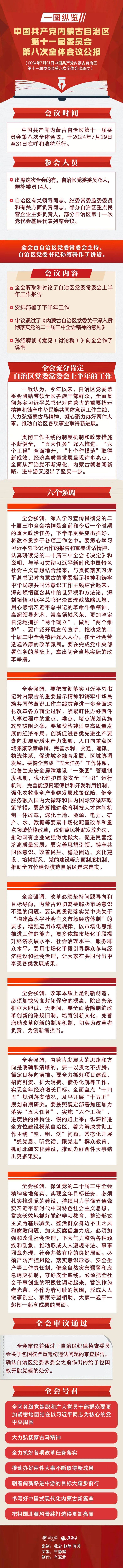 【學習貫徹黨的二十屆三中全會精神】中國共產黨內蒙古自治區第十一屆委員會第八次全體會議公報