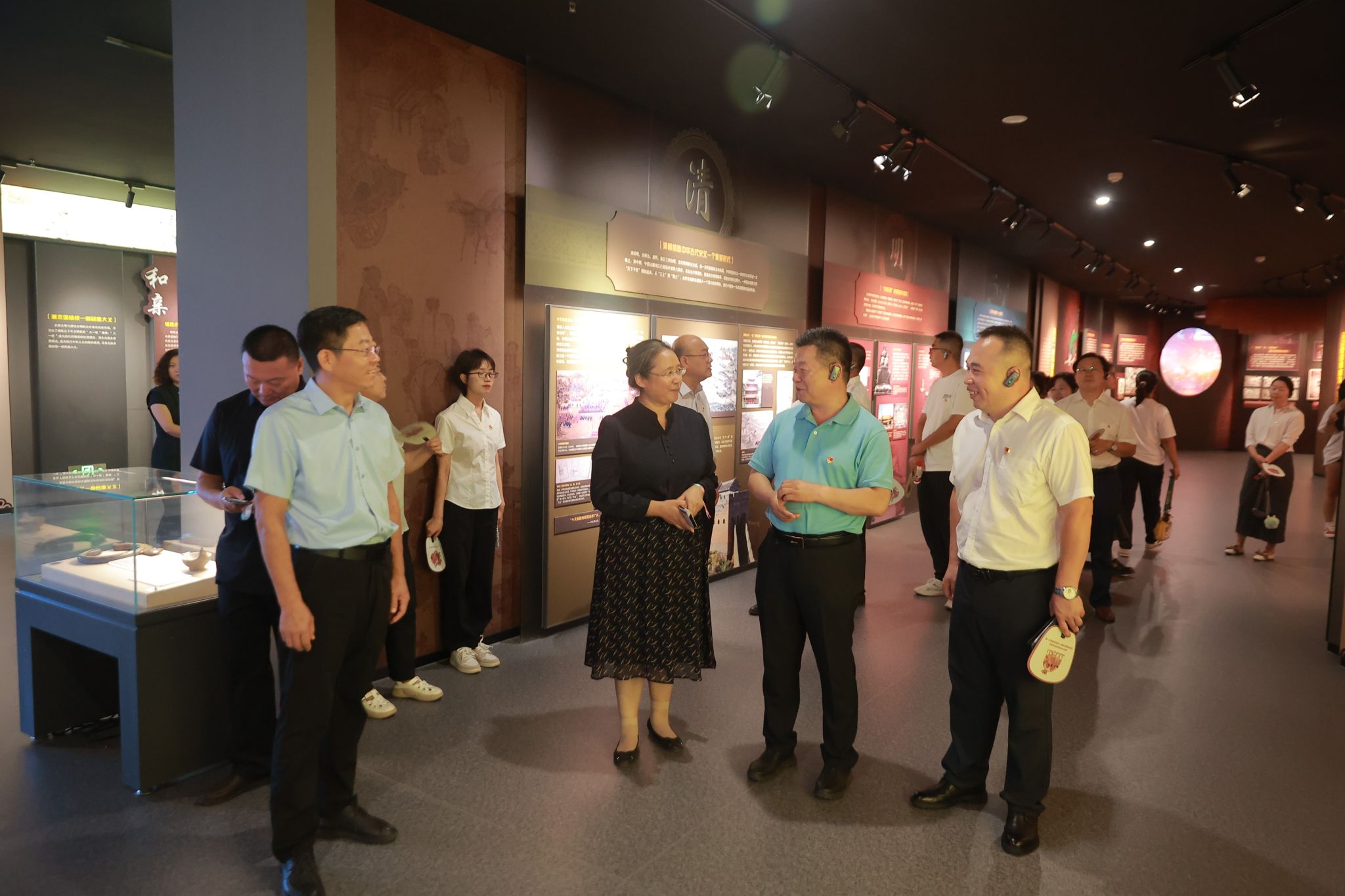 范建華副主任一行在教育館中認(rèn)真聆聽“北疆小紅馬”的學(xué)生講解,深入了解中華文明多元一體起源、黨的民族工作百年光輝歷程與歷史成就、內(nèi)蒙古自治區(qū)堅(jiān)定不移走中國特色解決民族問題的正確道路等主要內(nèi)容,并深入校史館了解學(xué)校辦學(xué)71年的發(fā)展成就。