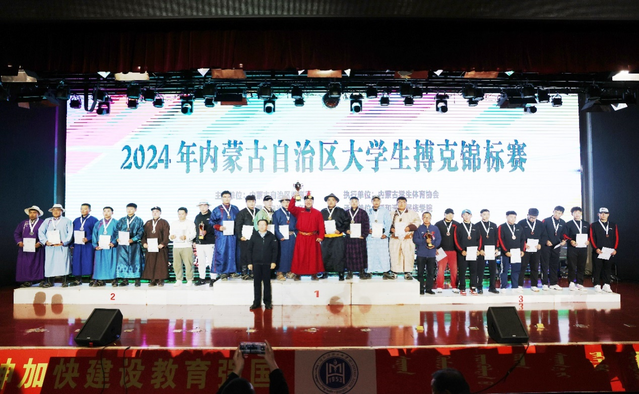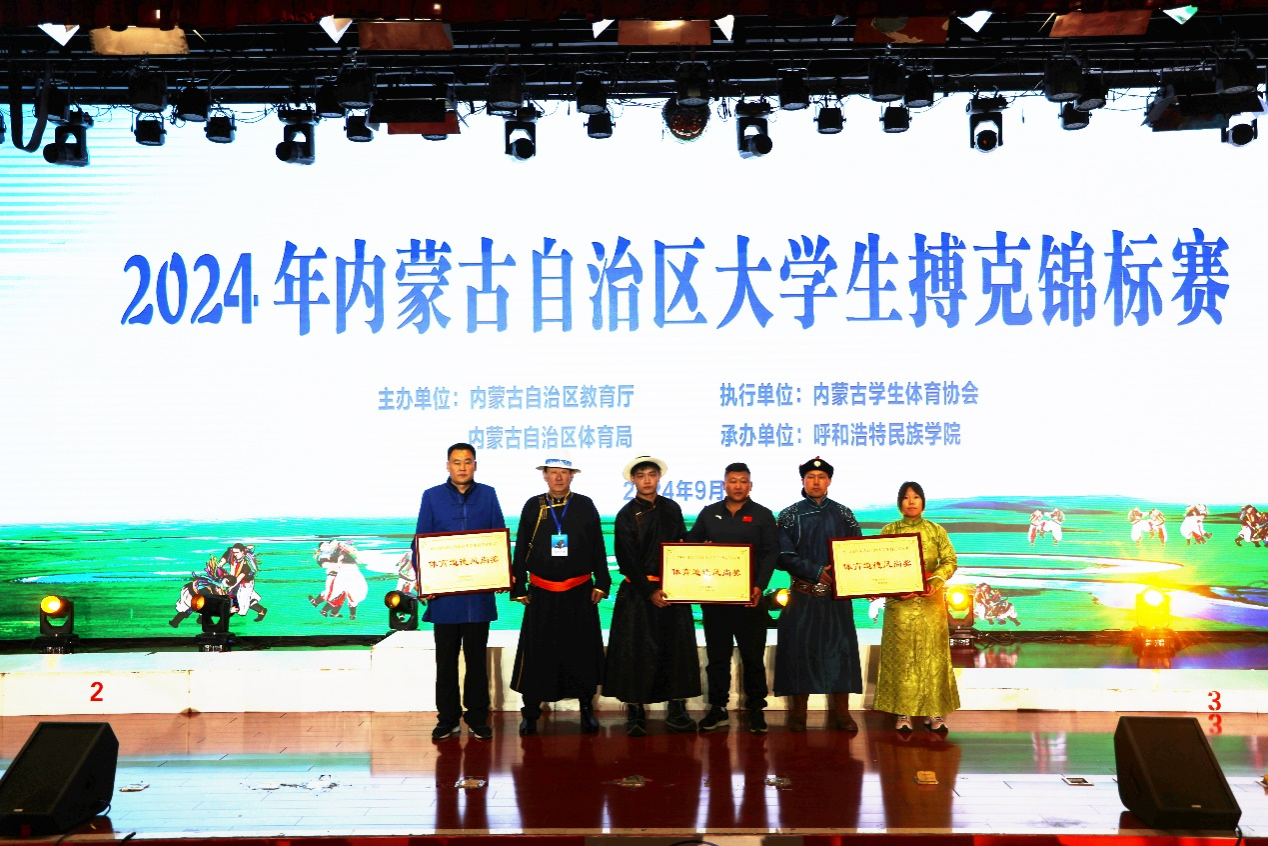 9月29日,2024年內蒙古自治區大學生搏克錦標賽閉幕式在鑄牢教育館二樓舉行,校黨委委員、副校長劉瑞鴻等相關單位領導參加閉幕式并為獲獎運動員頒獎。