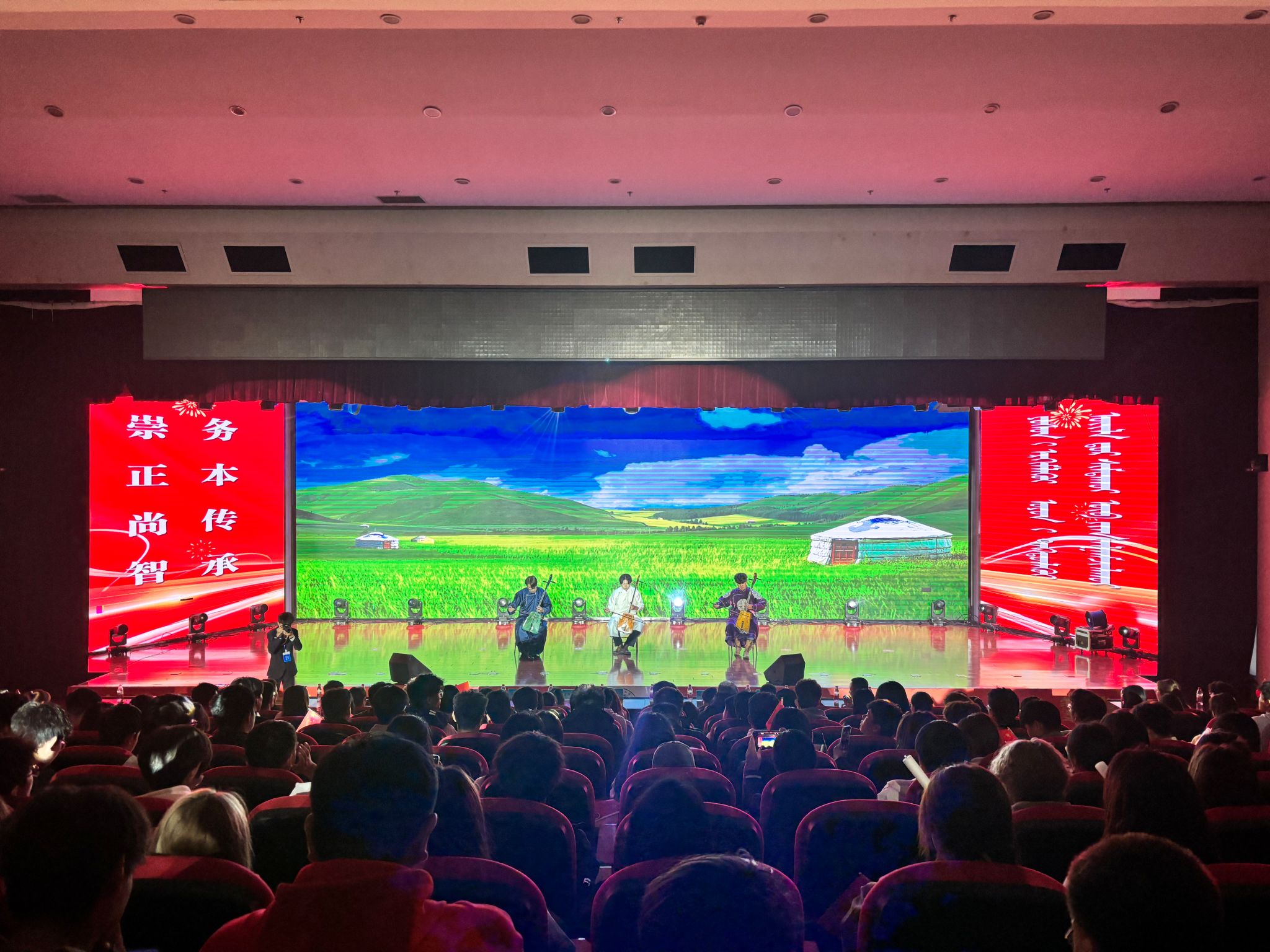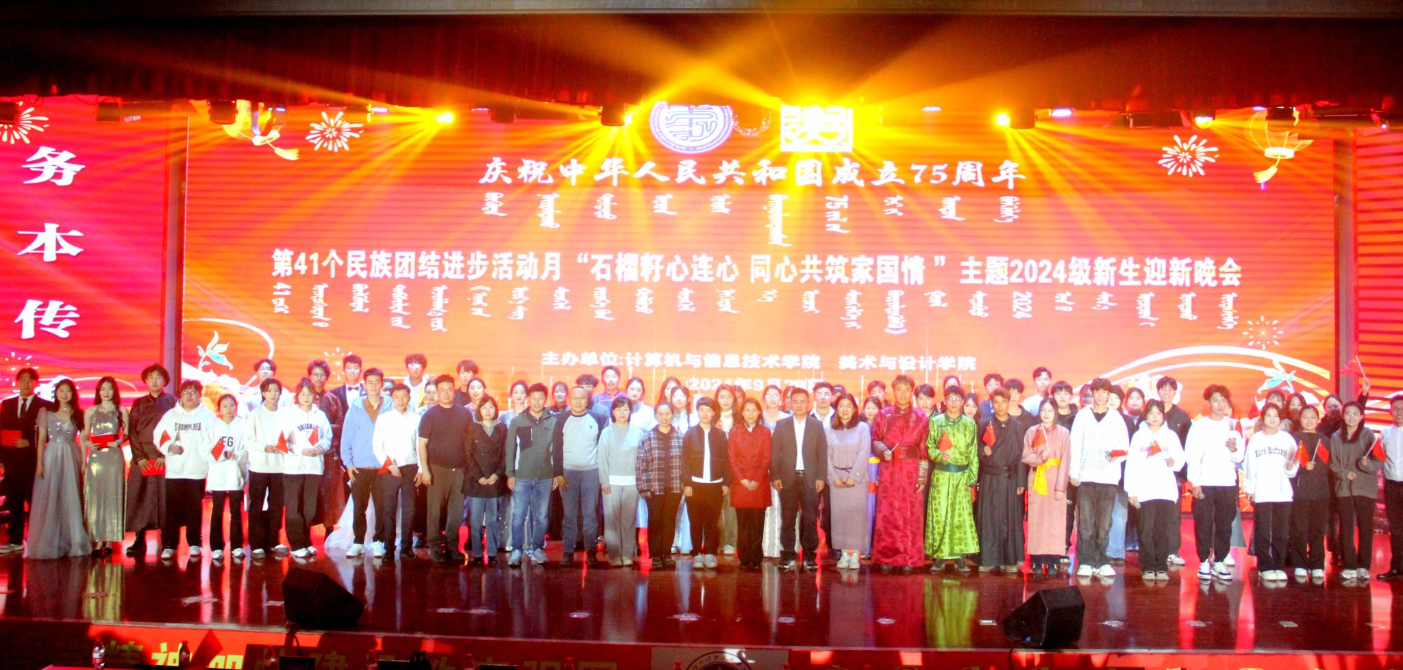金秋送爽,丹桂飄香。為熱烈慶祝中華人民共和國成立75周年,學校深入開展第41個民族團結進步月活動,9月29日,計算機與信息技術學院、美術與設計學院在北院圖書館二樓報告廳聯合舉辦了“石榴籽心連心 同心共筑家國情”為主題的2024級新生迎新晚會。校黨委委員、紀委書記、監察專員王冬梅,黨委委員、統戰部部長朝格吉樂圖出席晚會。