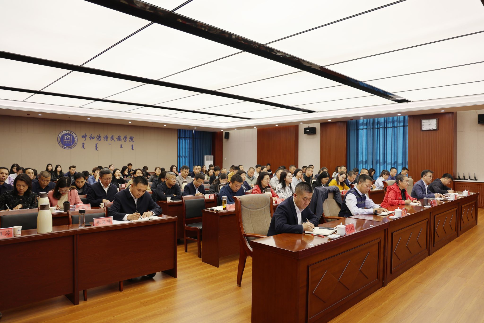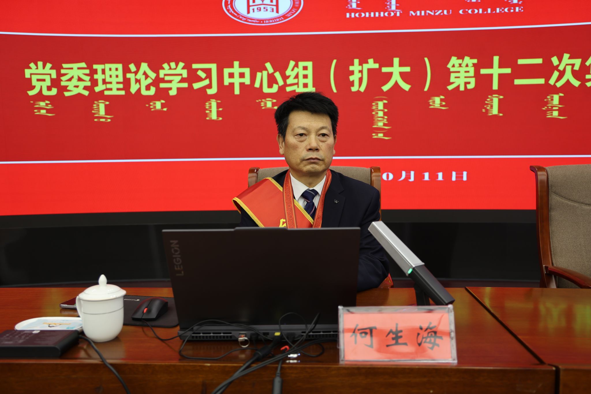 為進一步深入學習貫徹習近平總書記在全國民族團結進步表彰大會的重要講話精神,扎實推進習近平總書記關于加強和改進民族工作的重要思想深入人心,貫徹落實黨中央關于大力宣介中華民族共同體意識的重要要求,按照自治區民委鑄牢中華民族共同體意識宣講工作安排,10月11日,學校召開黨委理論學習中心組(擴大)第十二次集體學習會,邀請全國民族團結進步模范個人、自治區民委鑄牢中華民族共同體意識宣講團成員、內蒙古大學特聘教授何生海作了專題宣講。黨委理論學習中心組成員、副處級以上干部、思政課教師代表以及學生代表參會。會議由校黨委宣傳部部長張海峰主持。